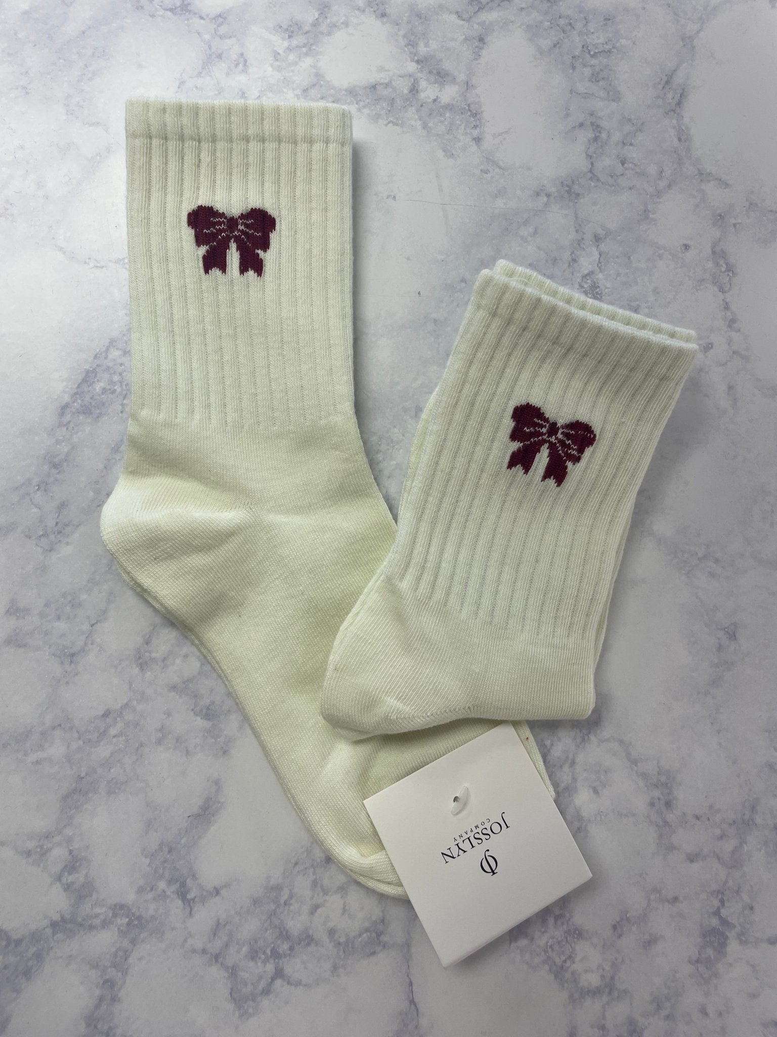 Stay stylish from head to toe with our Bow Crew Socks! These crew socks feature a charming maroon bow, adding a touch of playfulness to any outfit. Say goodbye to boring socks and hello to ultimate style!