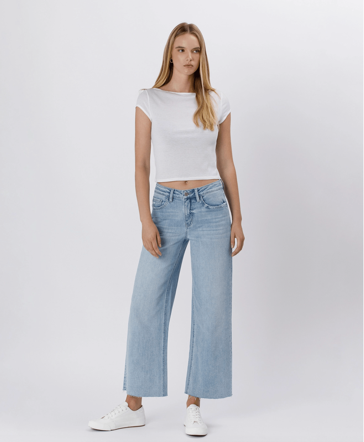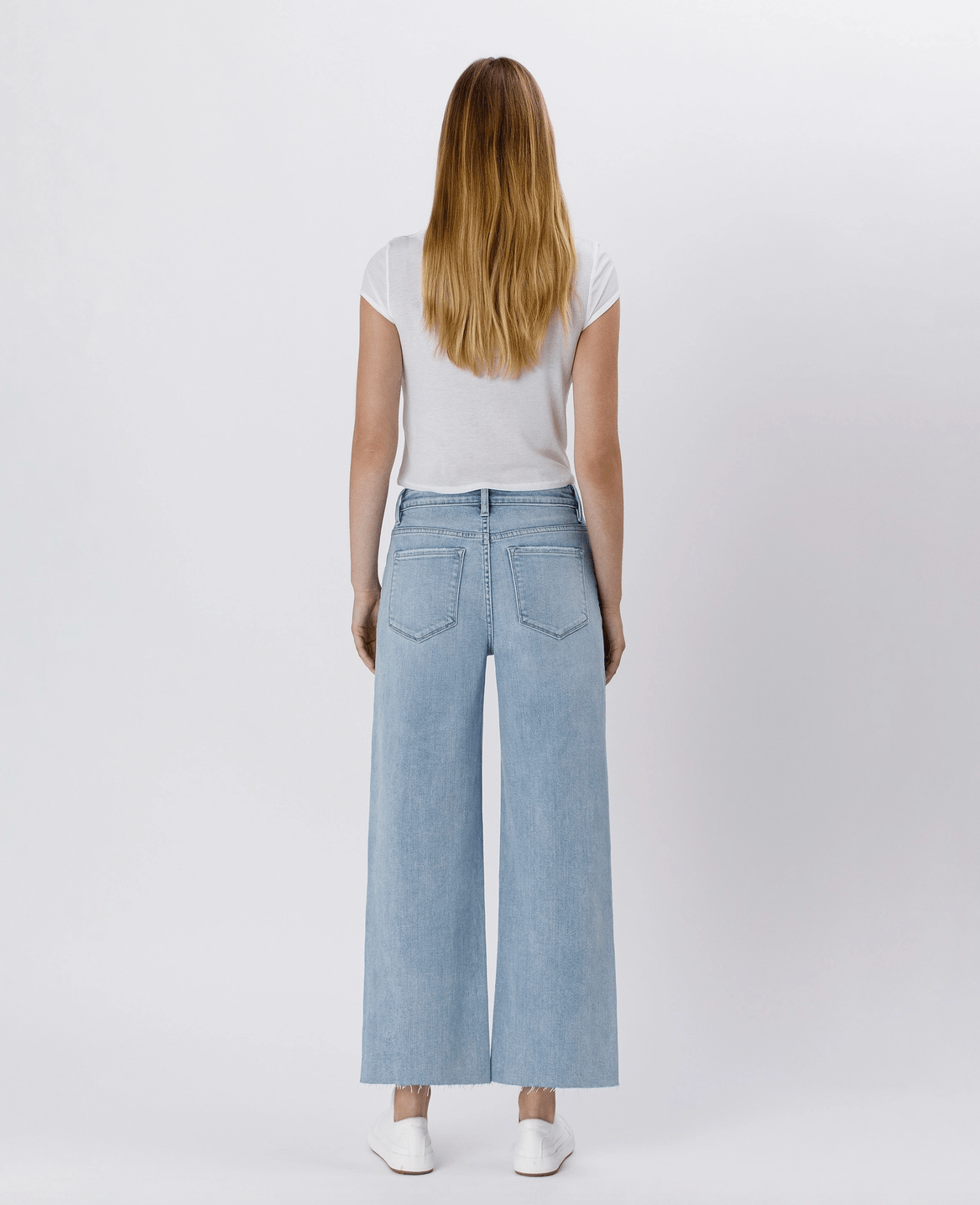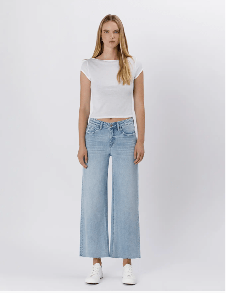 Step into effortless style with the Best Selling Olivia High Rise Crop Wide Leg Jeans. Crafted from comfort stretch denim, these jeans feature a flattering high-rise waist and a clean-cut raw hem for a trendy edge. The perfect light wash and cropped wide-leg silhouette make them ideal for playful, laid-back looks that move with you all day long.