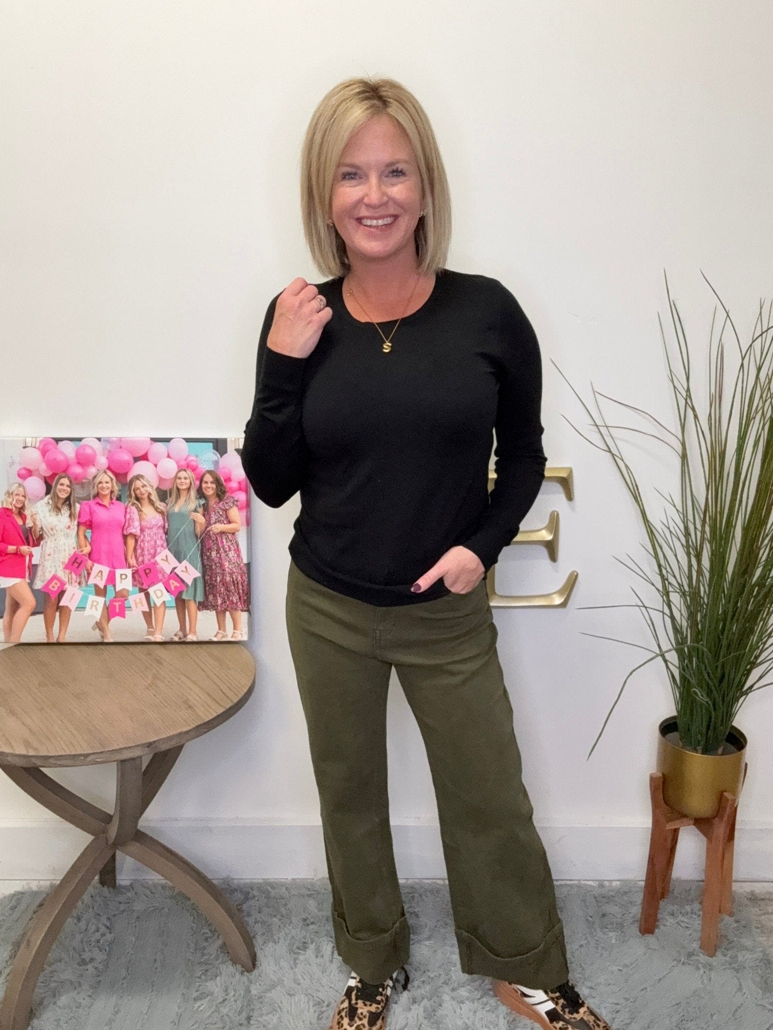 Open media with position 9 in modal popup Dark Green Straight Leg Jeans With Wide Hem 160 jeans - Ella Chic Boutique