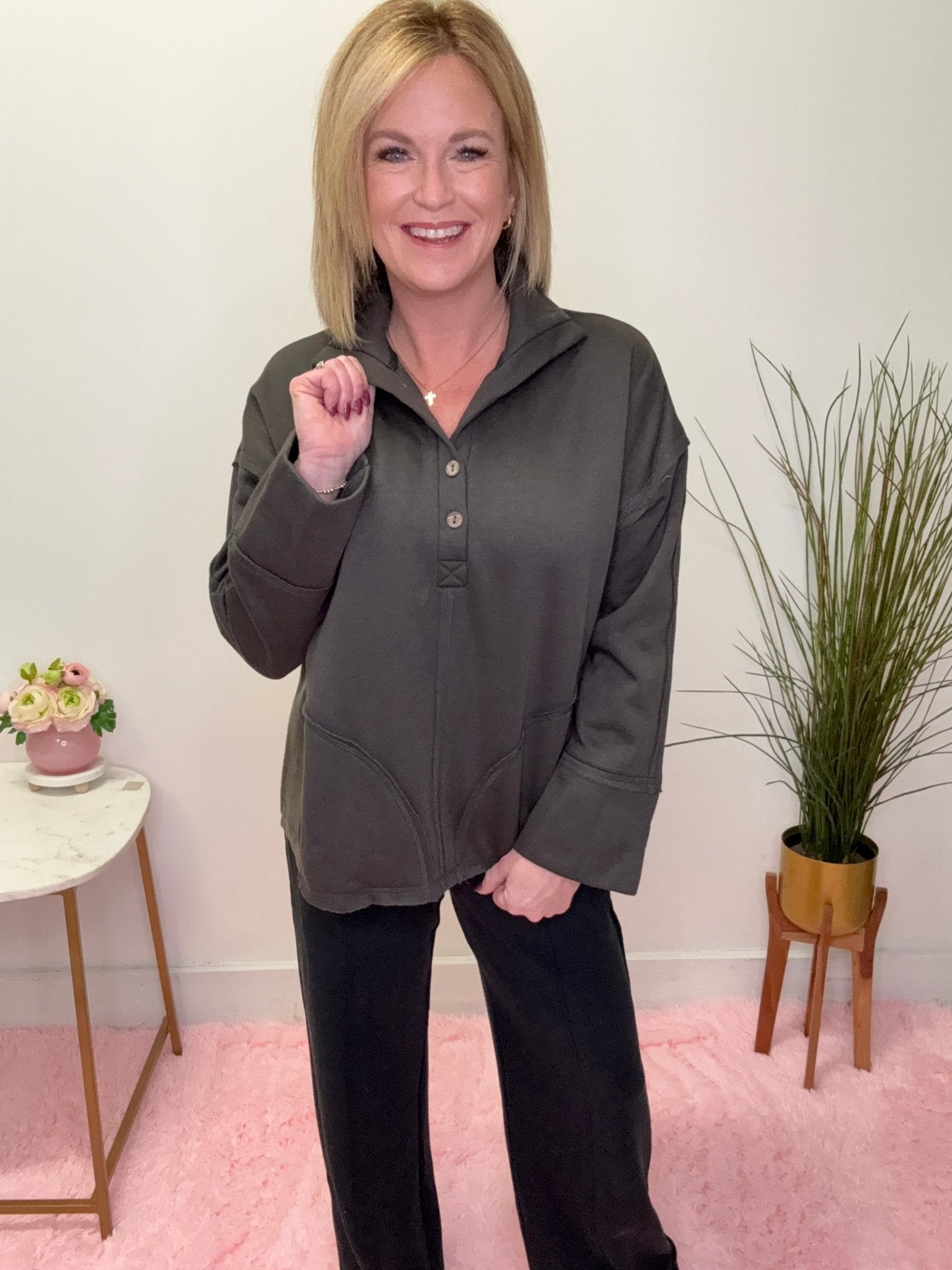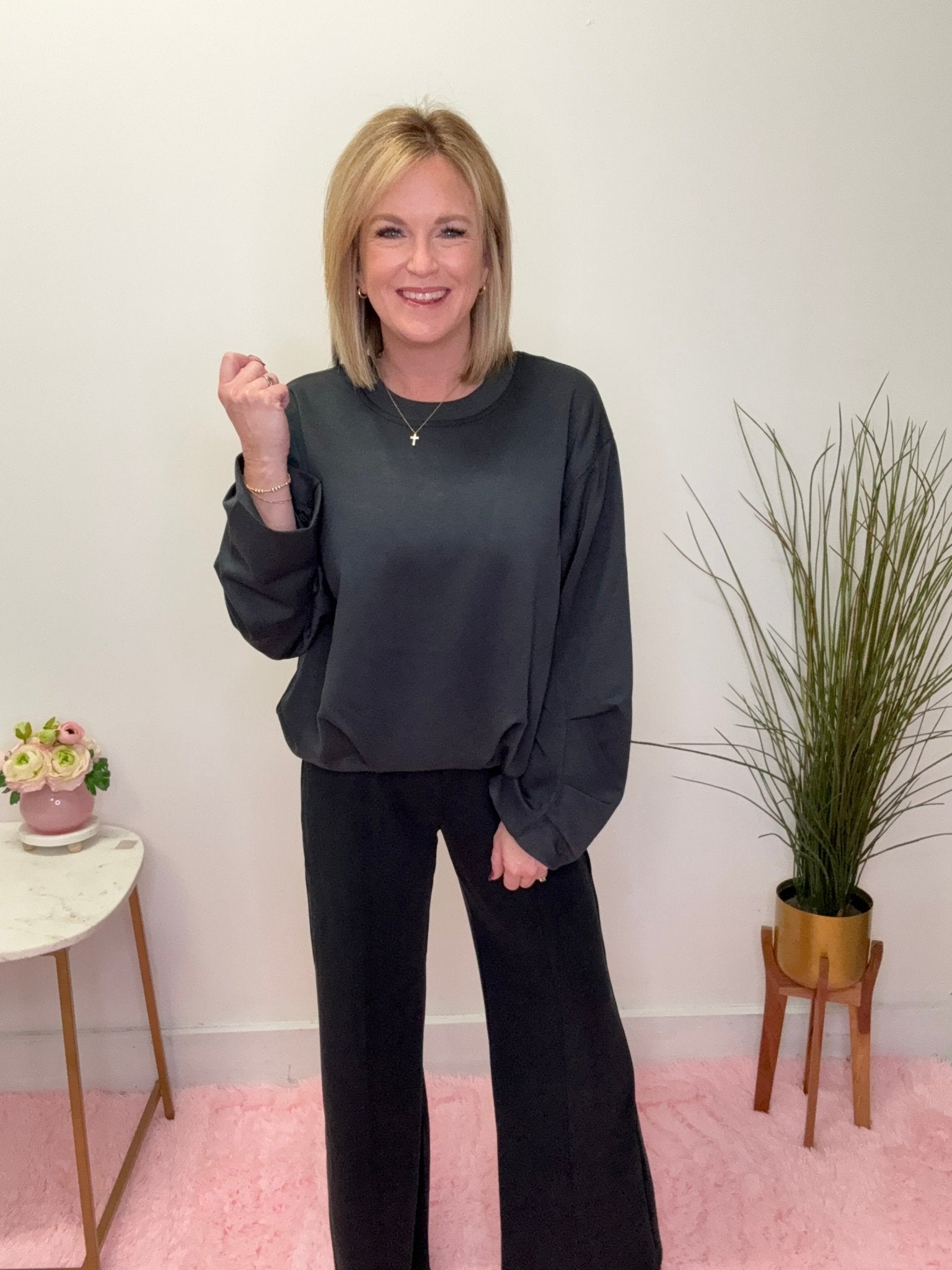 Meet the pants you’ll reach for on repeat—whether you’re headed out for coffee or settling in for a slow night at home. These wide leg beauties are made from our luscious Sofie Soft fabric, giving you that ultra-cozy, barely-there feel while still looking put-together.