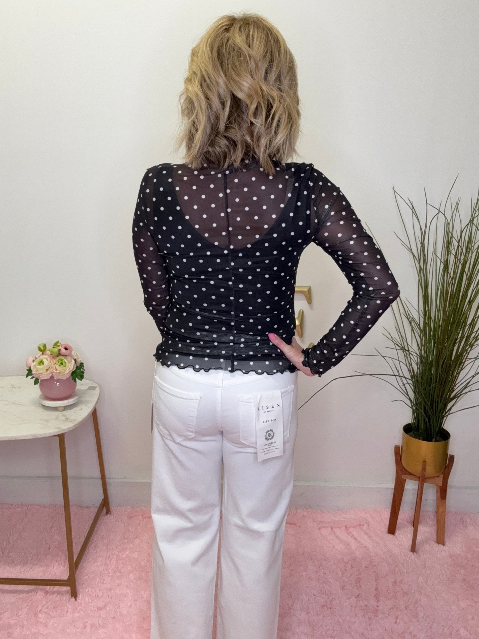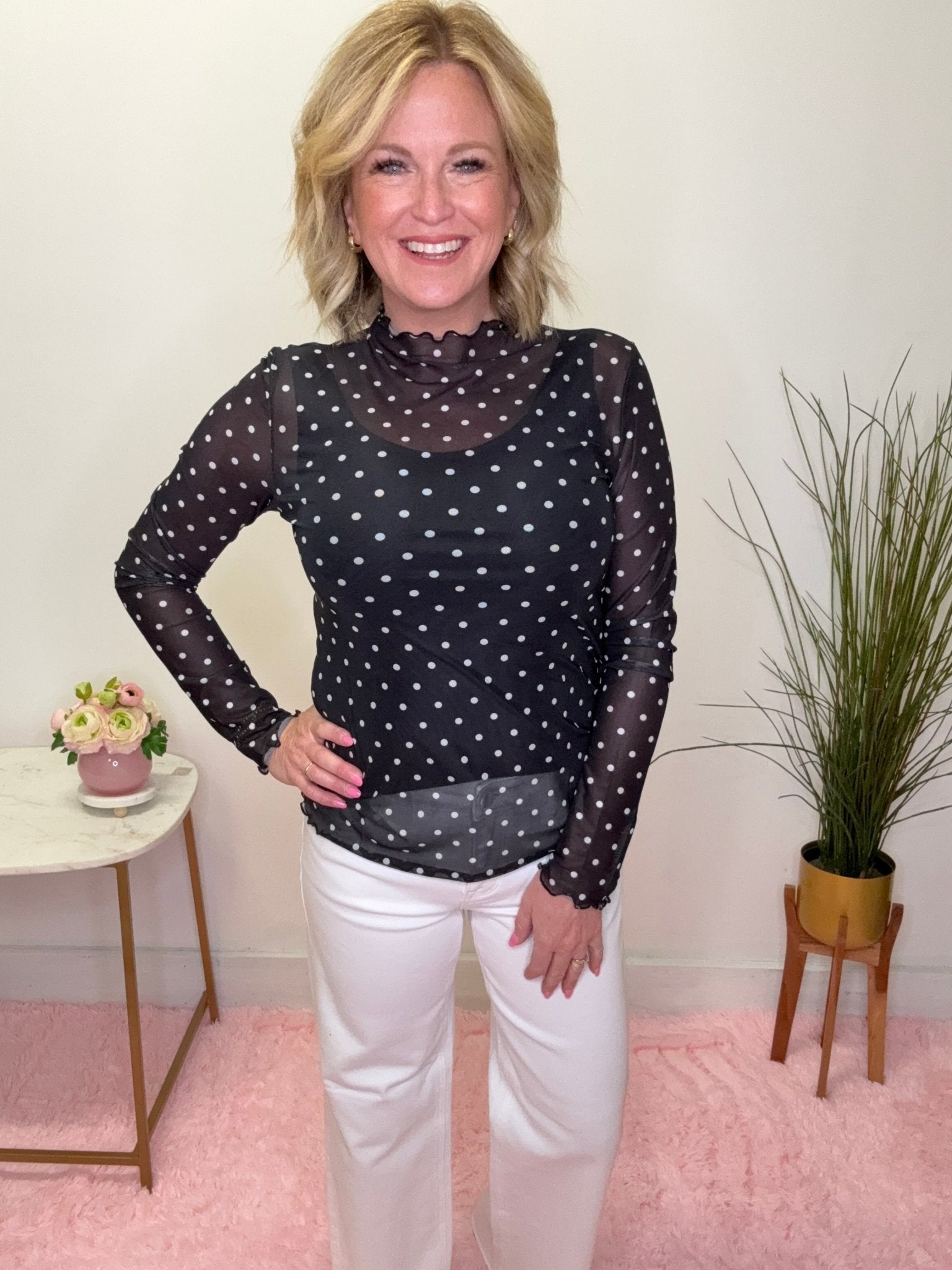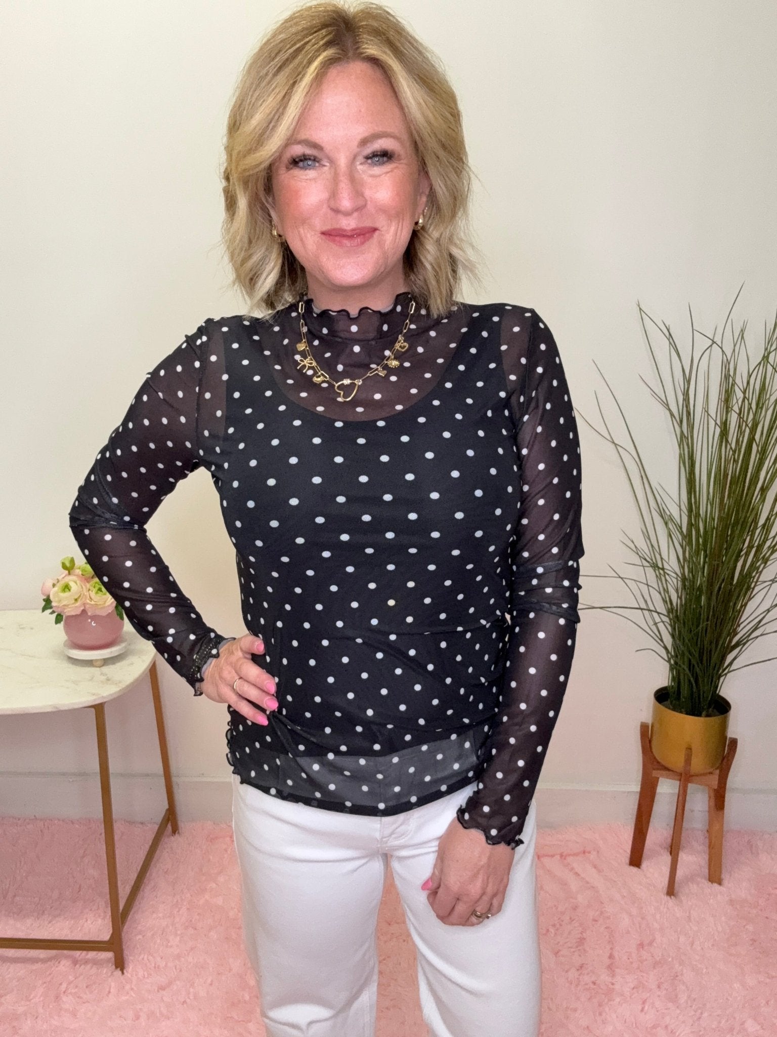 Polka Dot Mesh Long Sleeve Top in Black 110 Tops - Ella Chic BoutiqueSewn and Seen