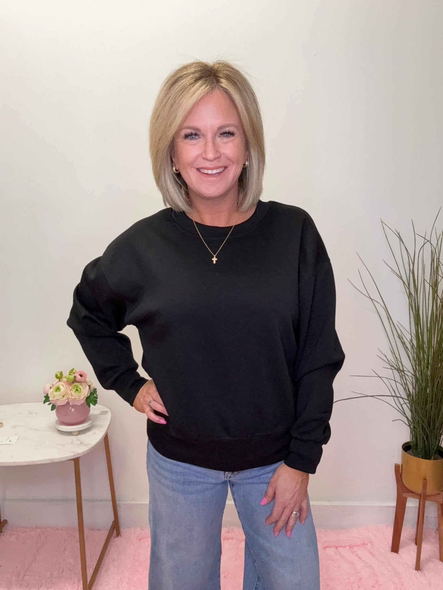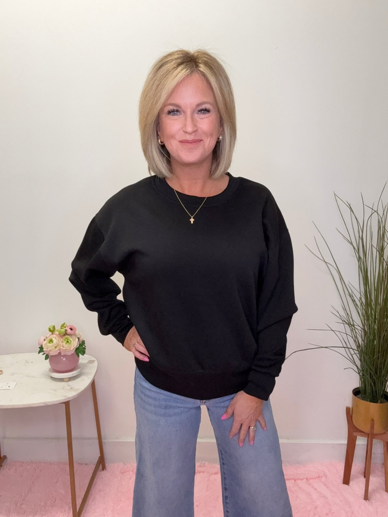 Open media with position 1 in modal popup The Stay - In (or Go - Out) Sweatshirt in Black 170 Pants - Ella Chic BoutiqueYelete