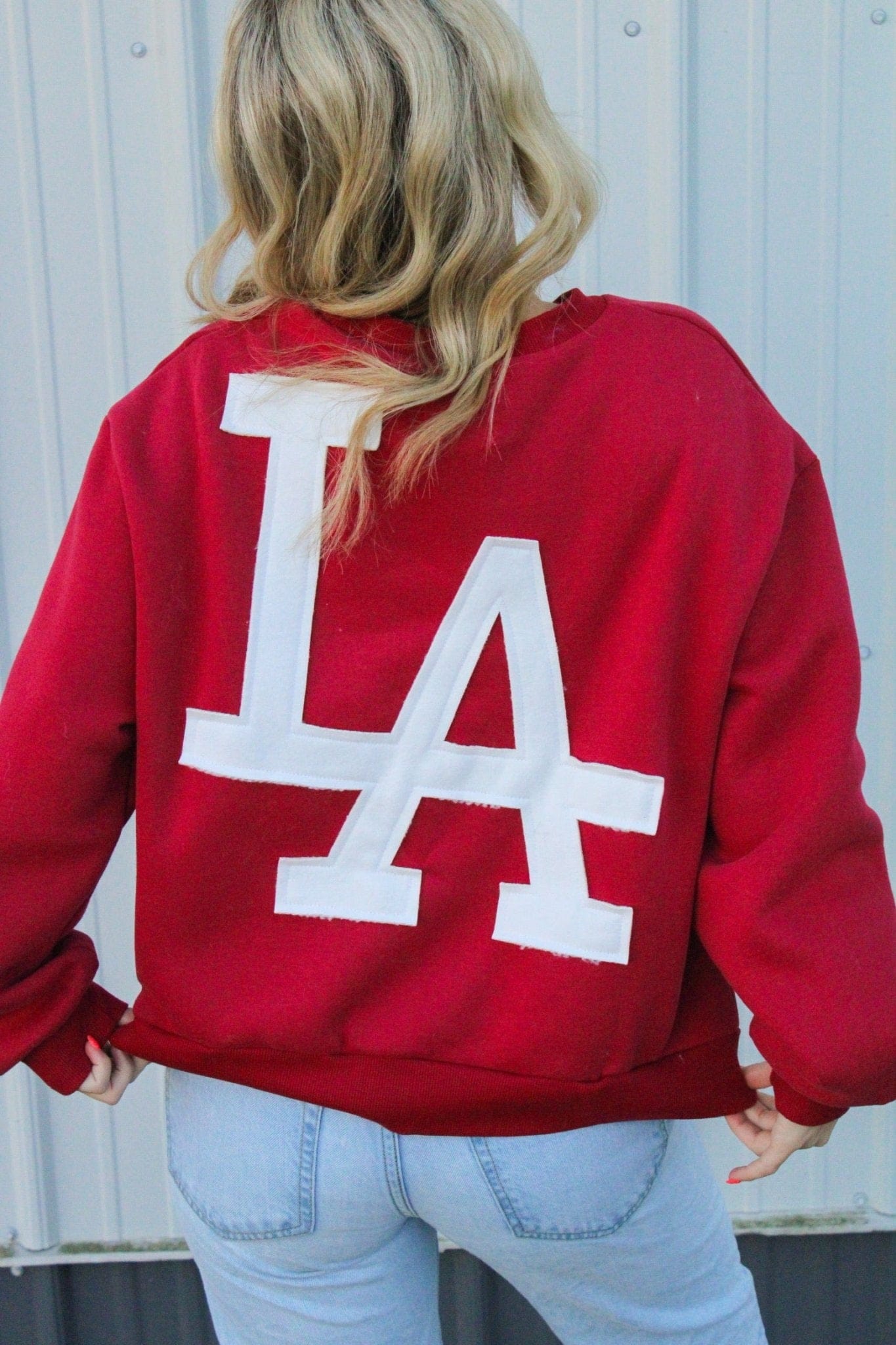 Open media with position 3 in modal popup LA City Cozy Sweatshirt in Burgundy 110 Tops - Ella Chic Boutique