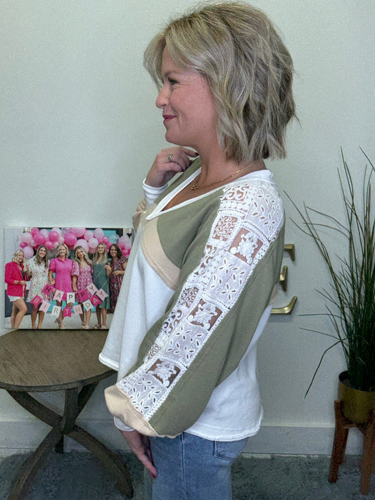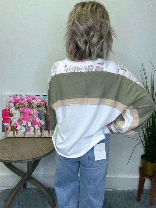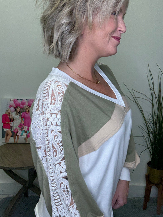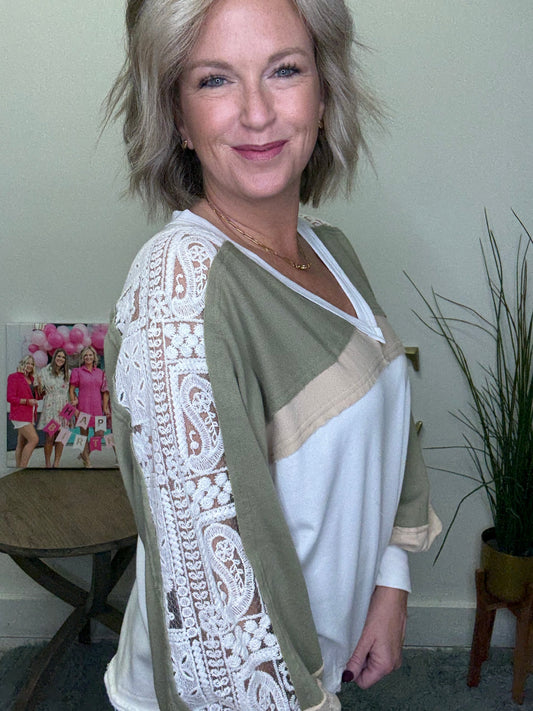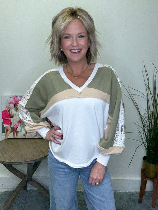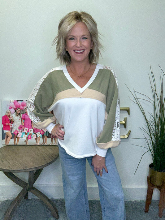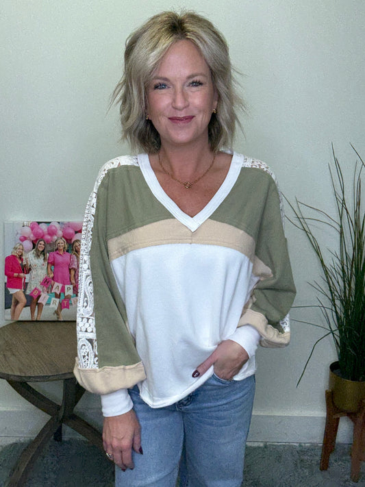 French Lace Colorblock V-Neck Top | Ella Chic Boutique