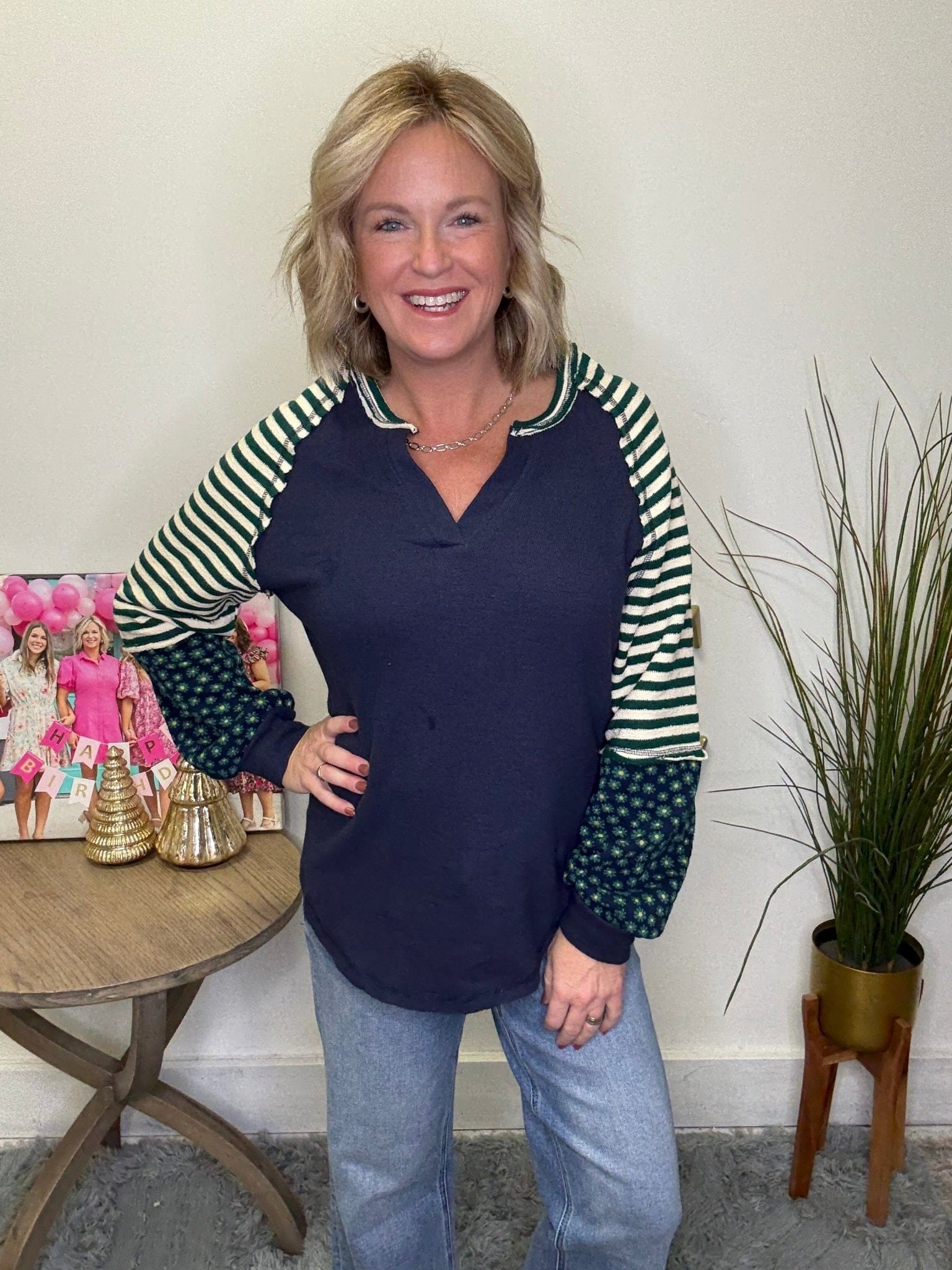 Stay comfortable and cute with our Oversized Floral And Stripes Knit Top in Green by Ella Chic! This unique top features stripes and florals on the sleeves, and a round hem in 2 color options. Perfect for a playful and stylish addition to your wardrobe.