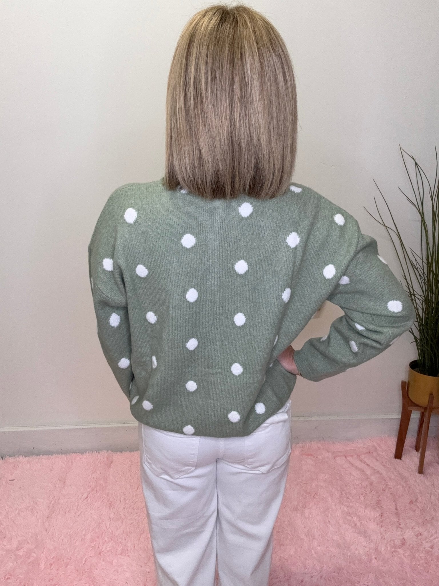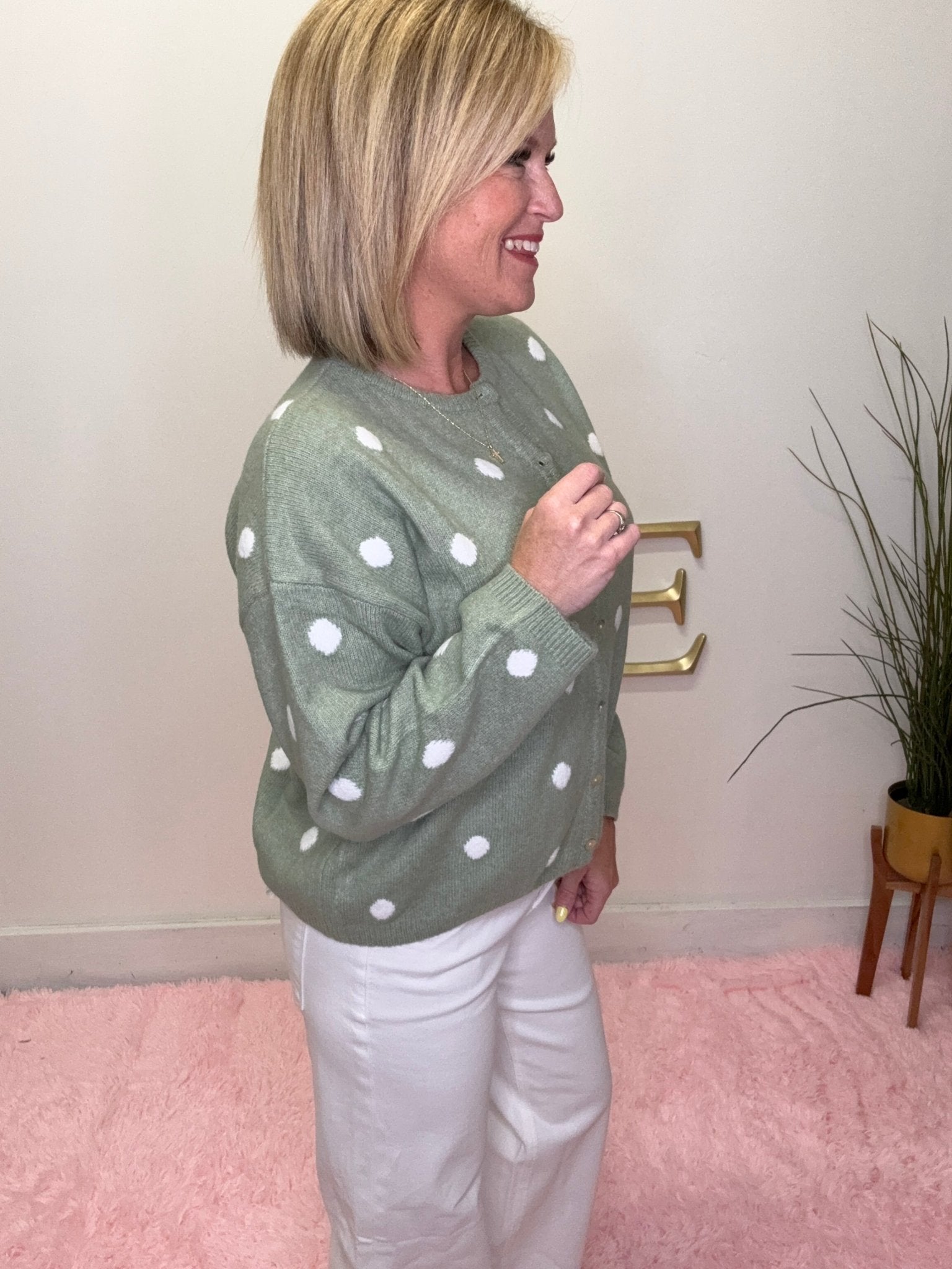 Simply Sage Polka Dot Cardigan Sweater