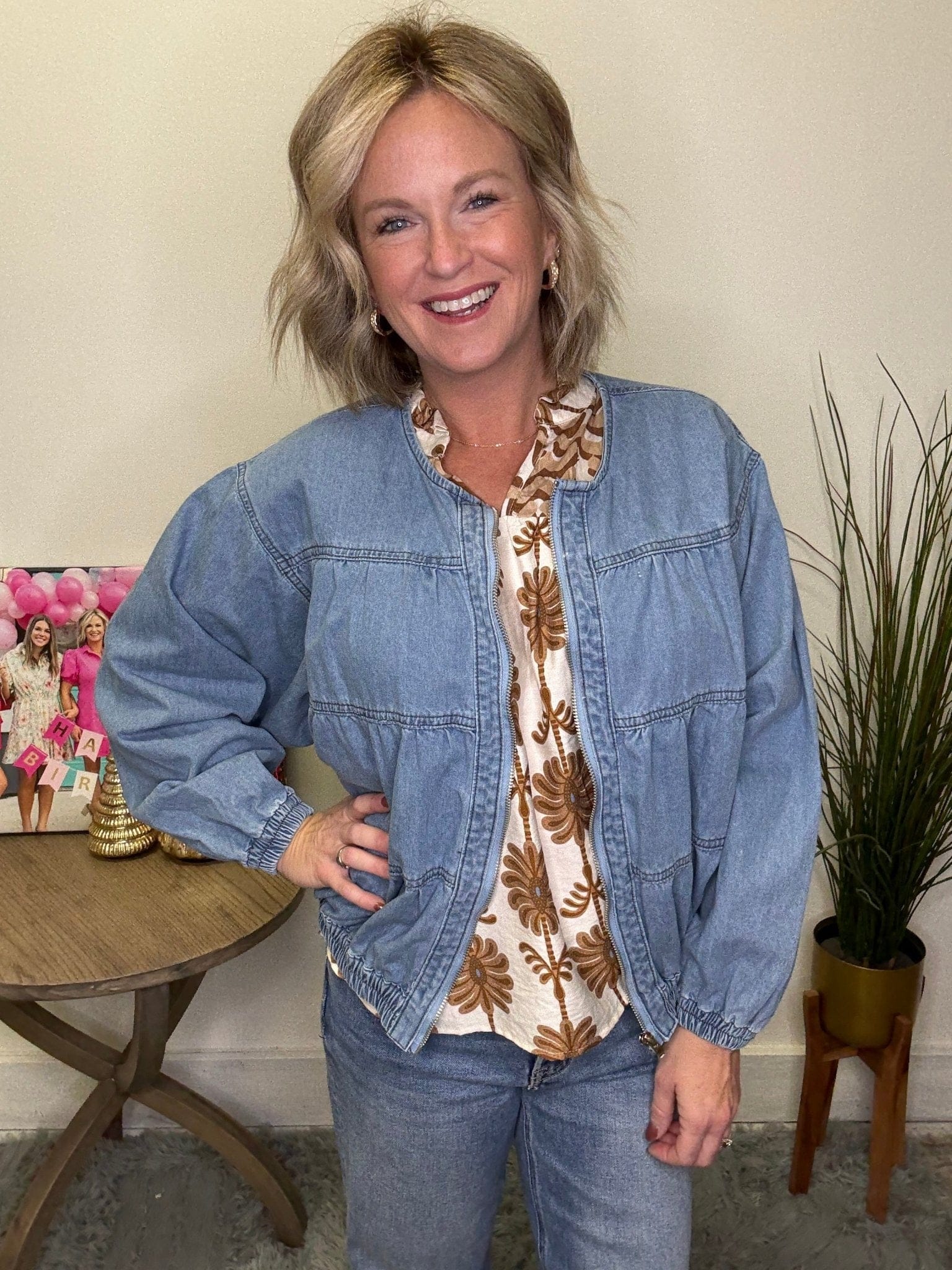Open media with position 1 in modal popup Gathered Detail Light Denim Jacket 140 Jackets - Ella Chic Boutique