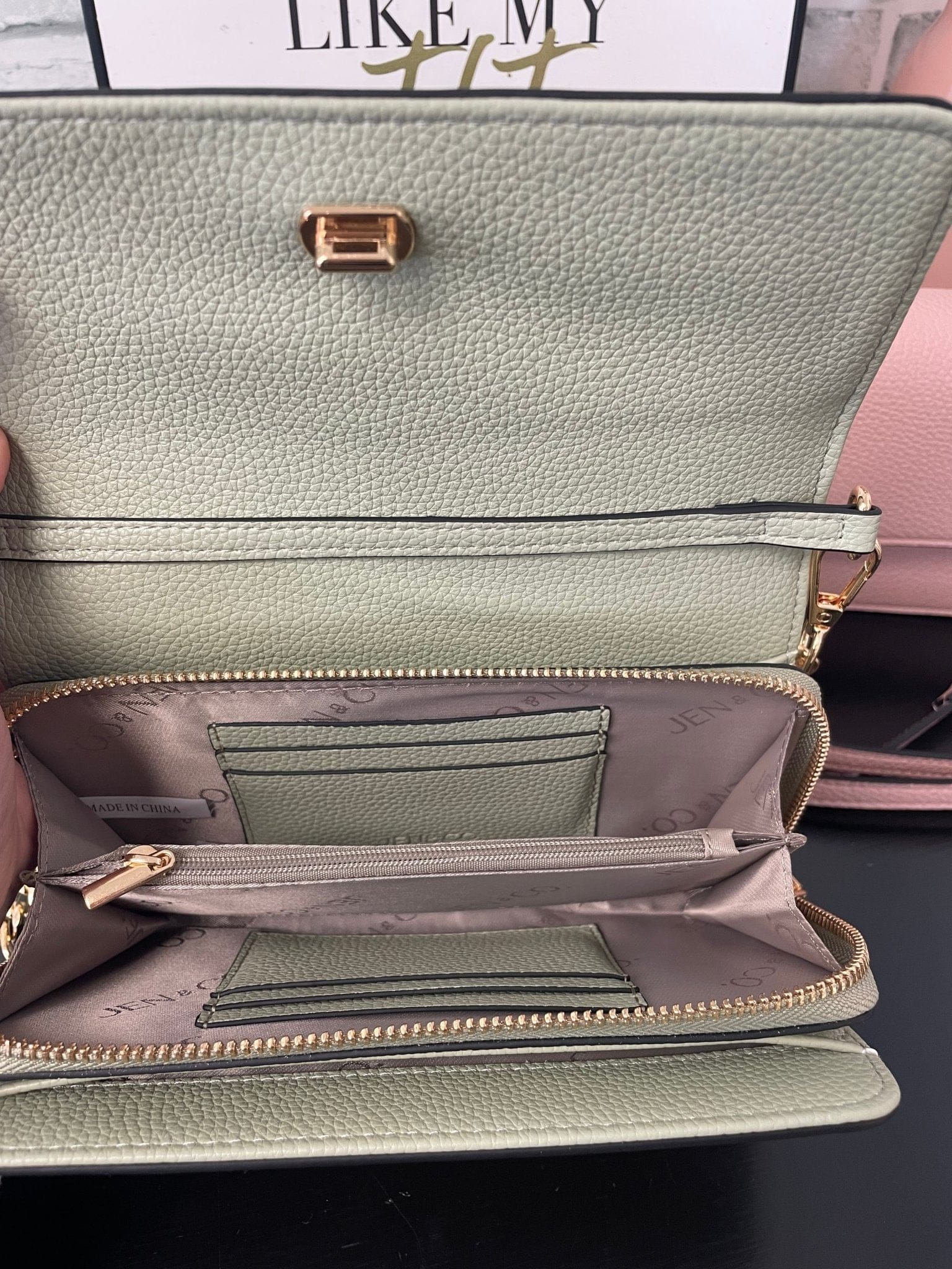 Introducing the oh-so-stylish Lauryn Flap over Crossbody Purse. With a zip close, you never have to worry about losing your essentials. The adjustable strap and chain accent give you options for any occasion, while the two color options let you express your unique sense of style. Plus, check out all those spaces for cards - no need for a wallet - this purse does it all!