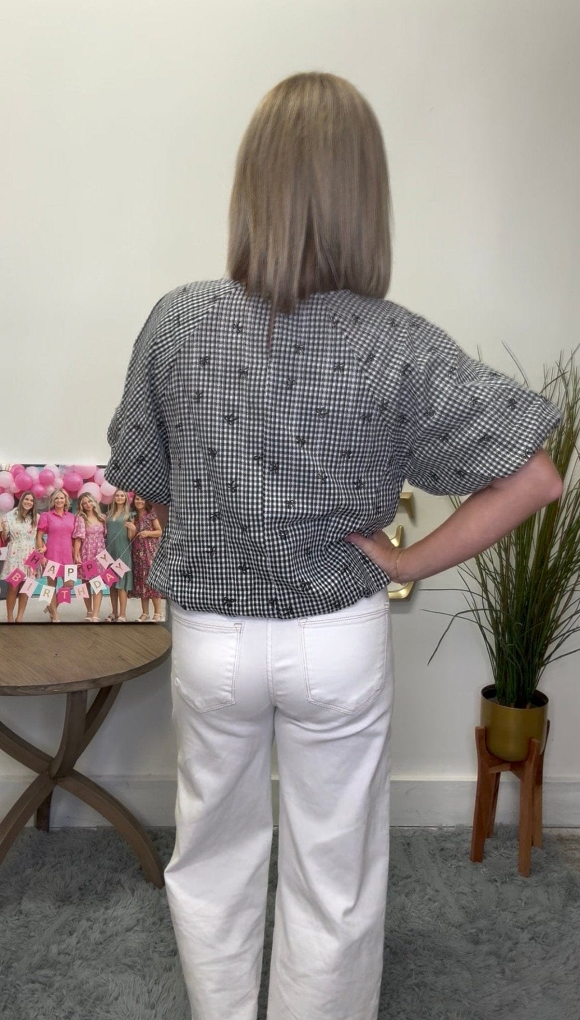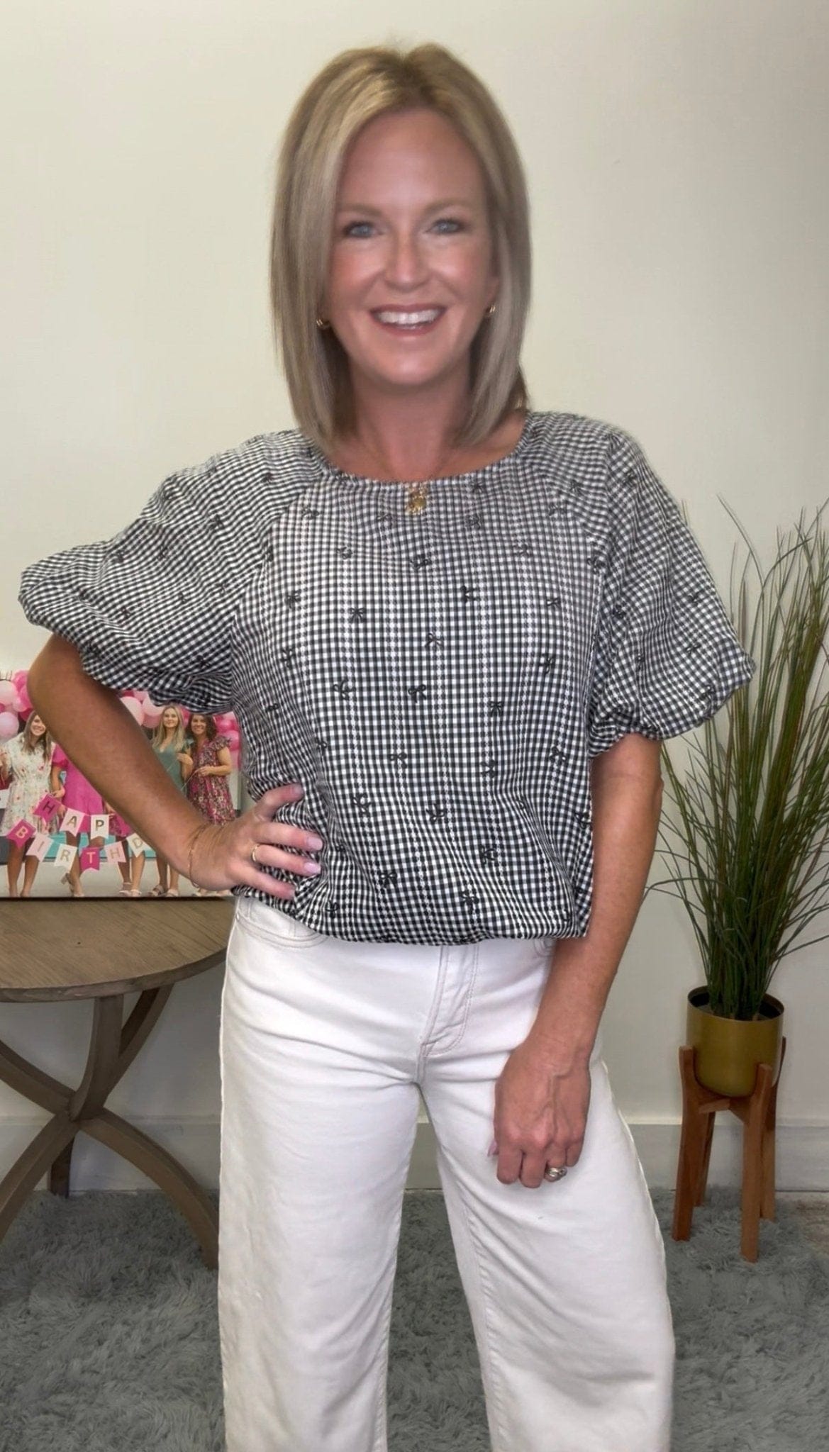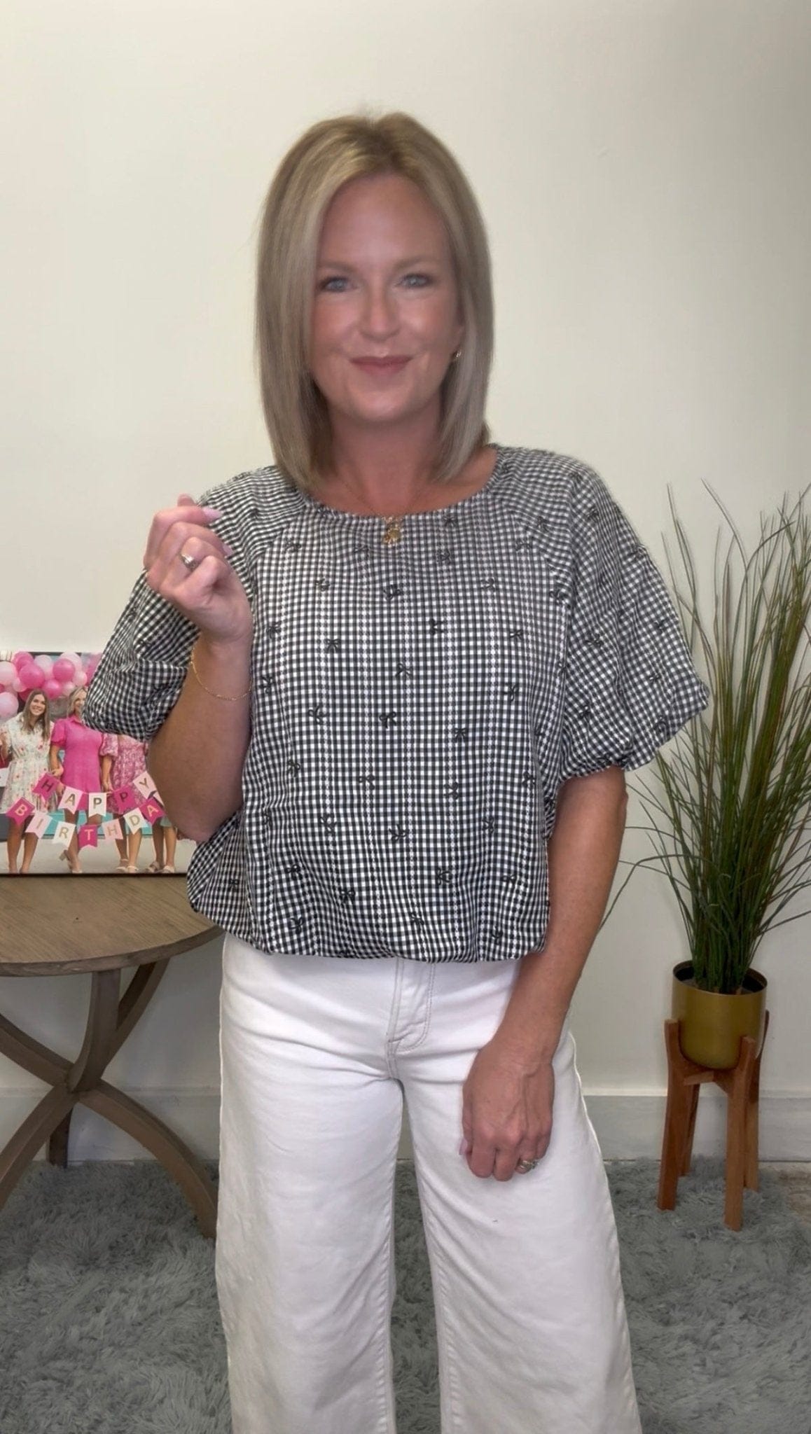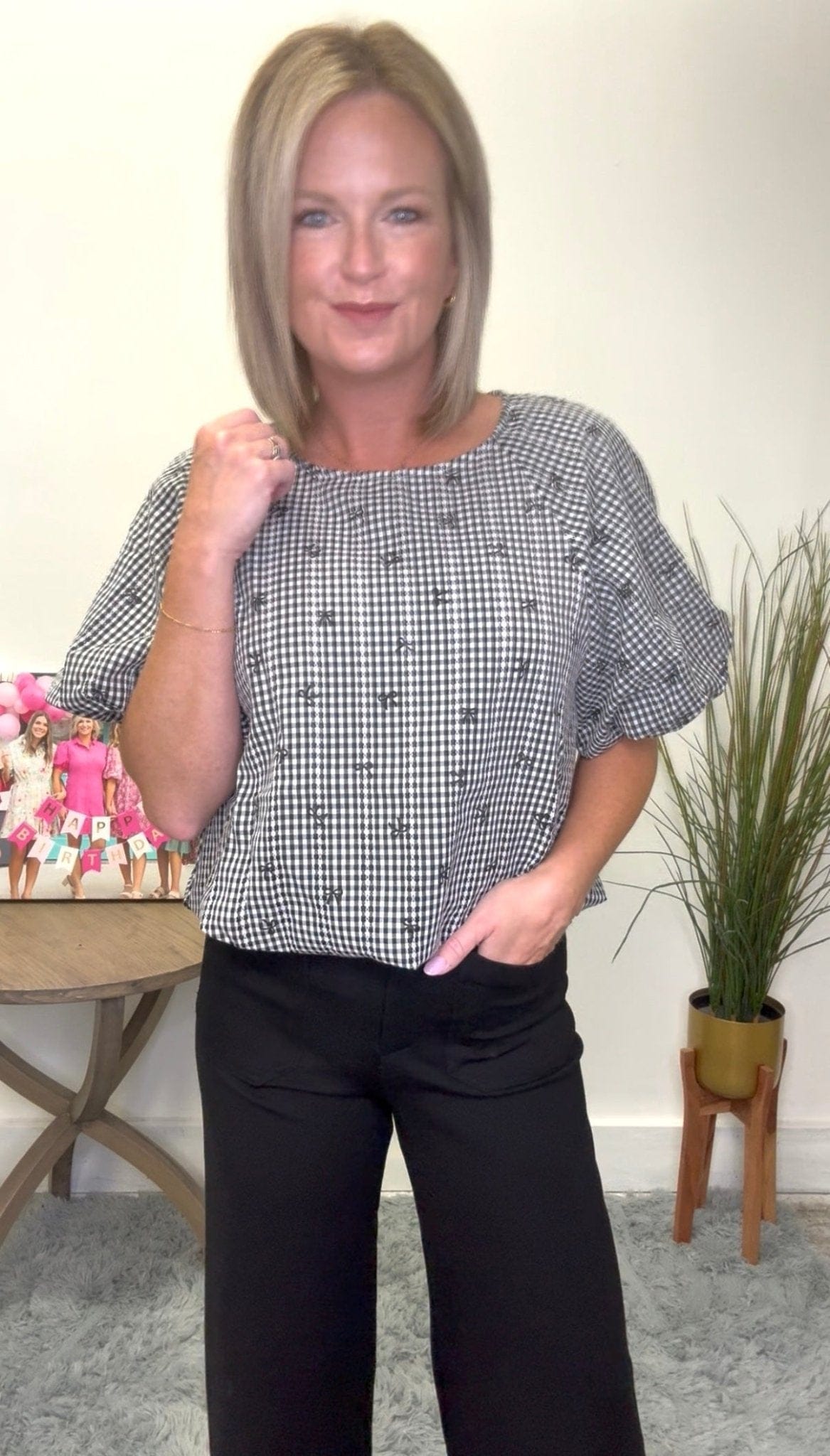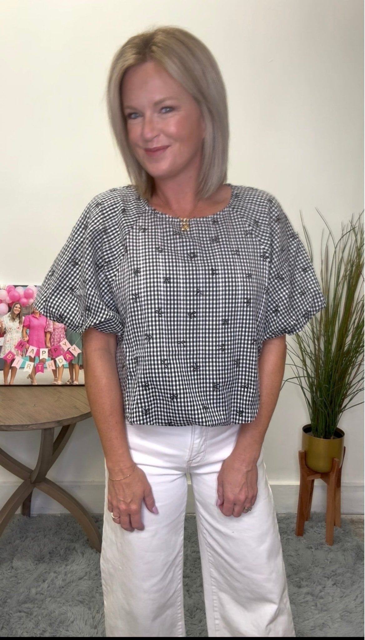 Open media with position 11 in modal popup Gingham Mini Bow Print Top 110 Tops - Ella Chic Boutique