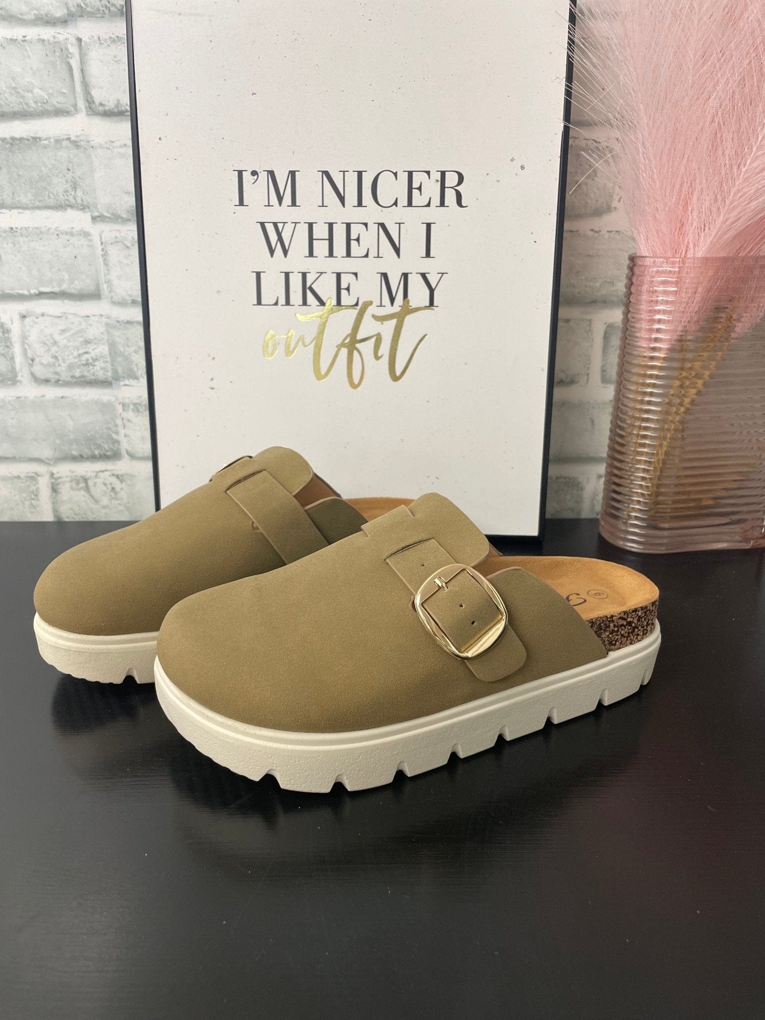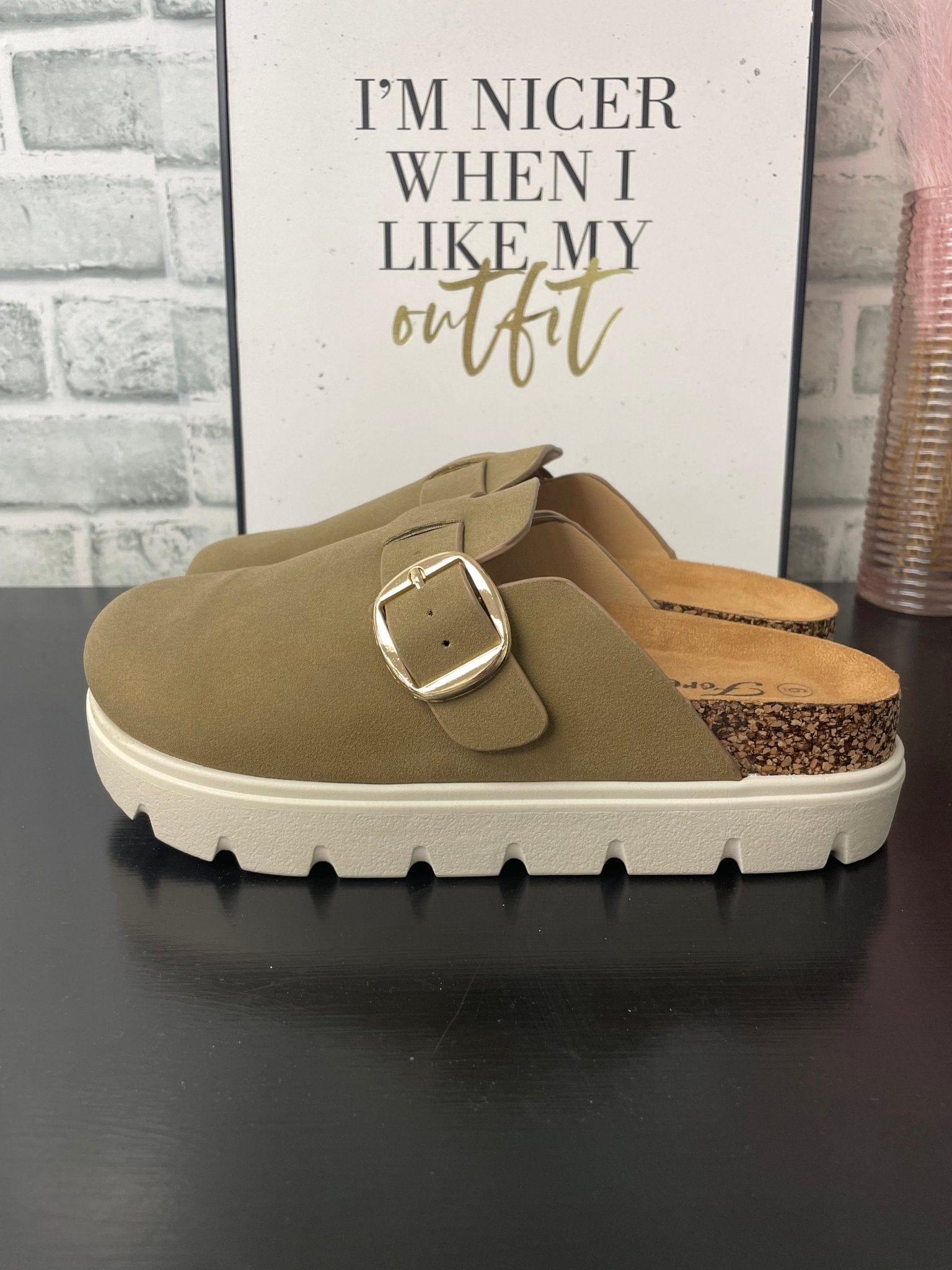 Elevate your style with this Chunky Birkenstock-inspired platform in a rich, dark taupe hue. The perfect balance of comfort and fashion, this clog’s chunky sole provides a trendy look while providing support for your feet. Add a touch of edge to any outfit with this versatile shoe.