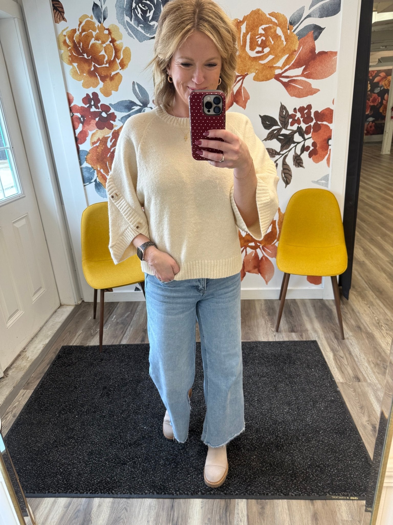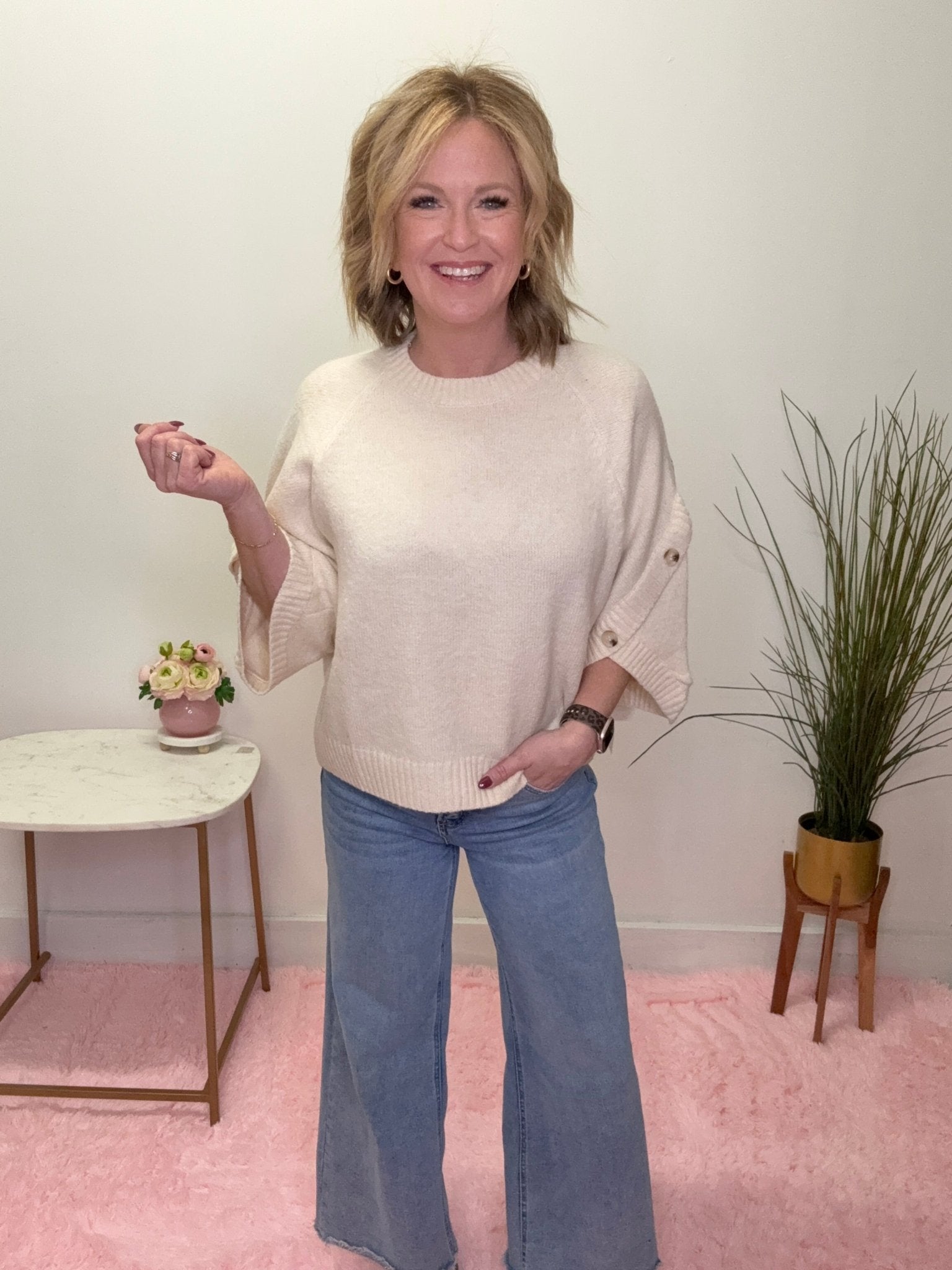 Dramatic Button Sleeve Cream Sweater