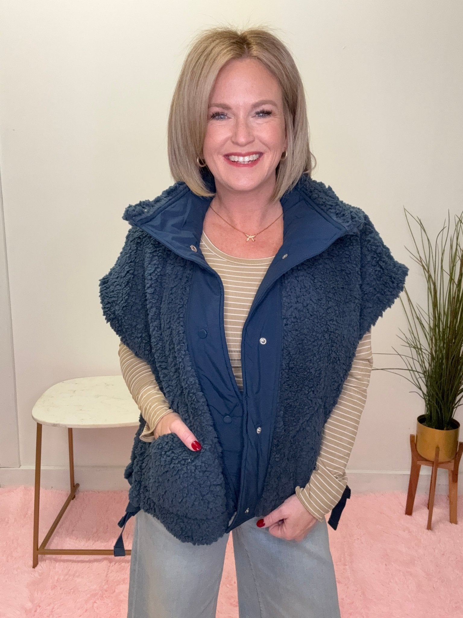 Looks Sharp Oversized Sherpa Sleeveless Vest Jacket