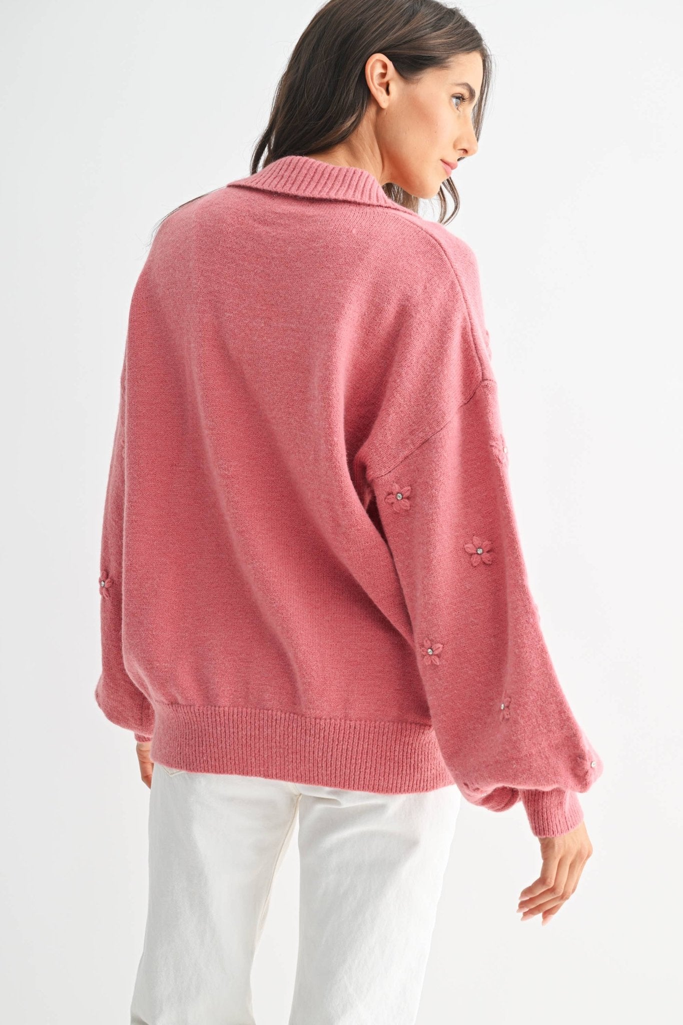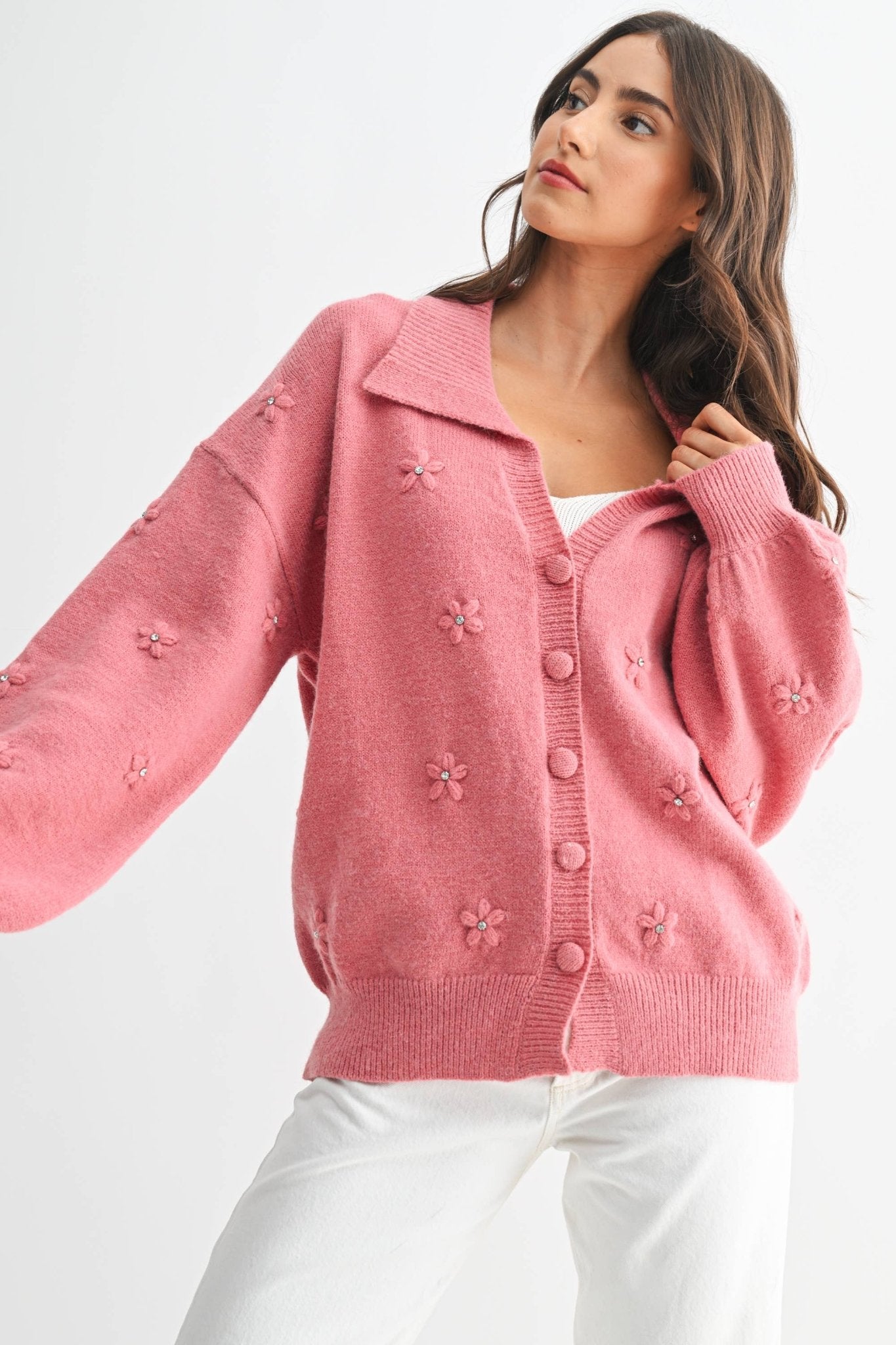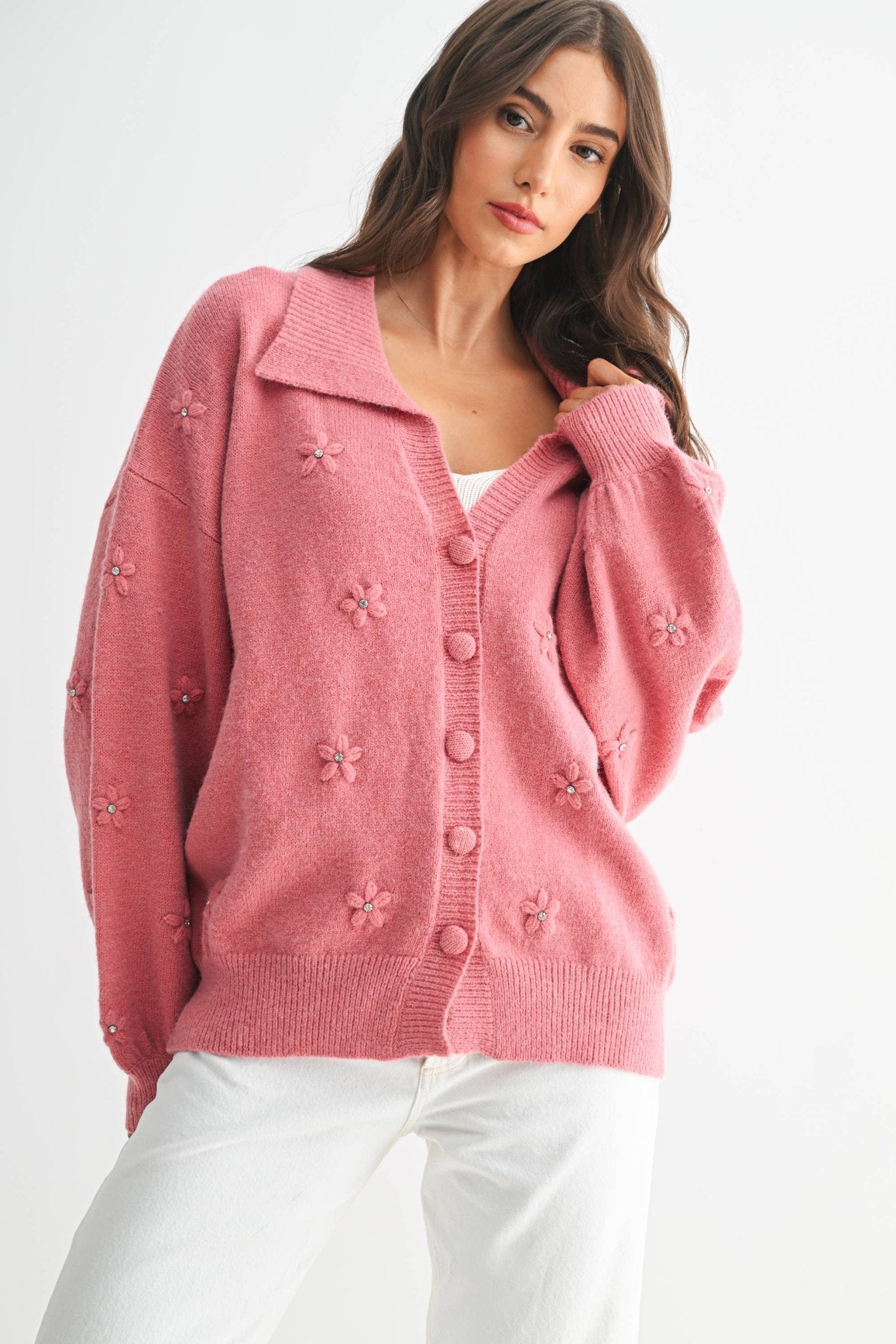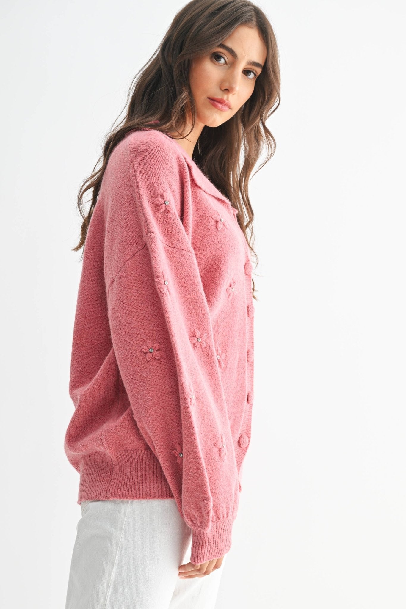 Cozy Cardigan With Floral Embellishments