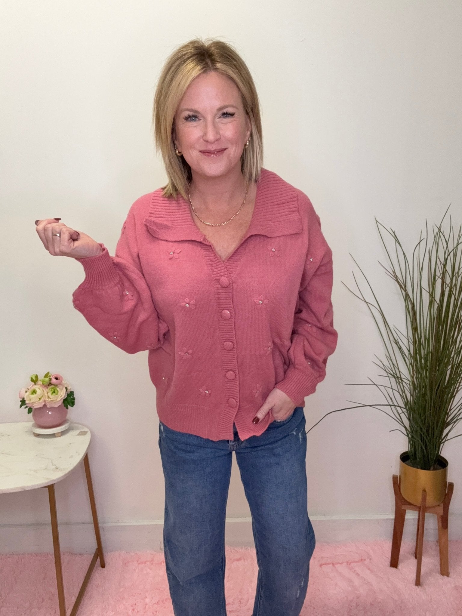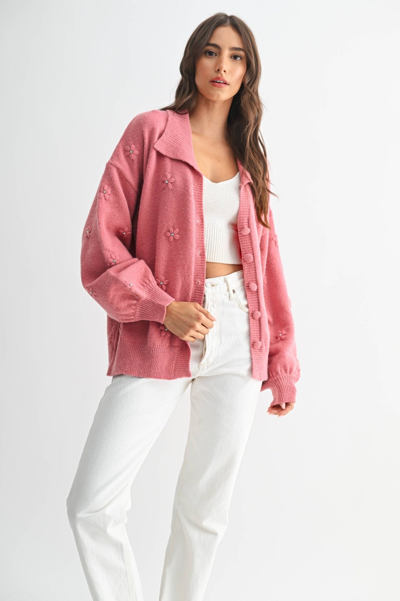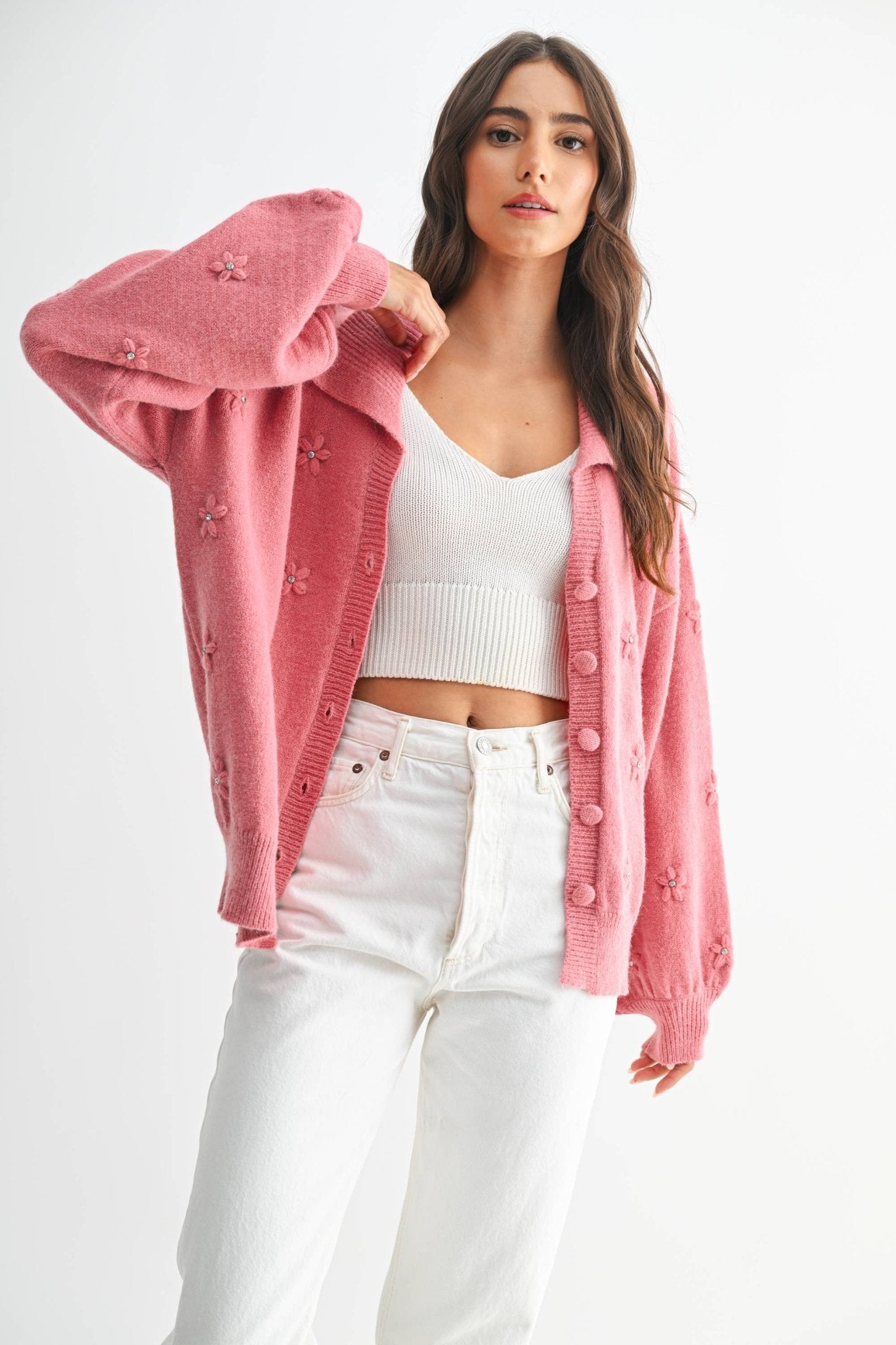 Cozy Cardigan With Floral Embellishments
