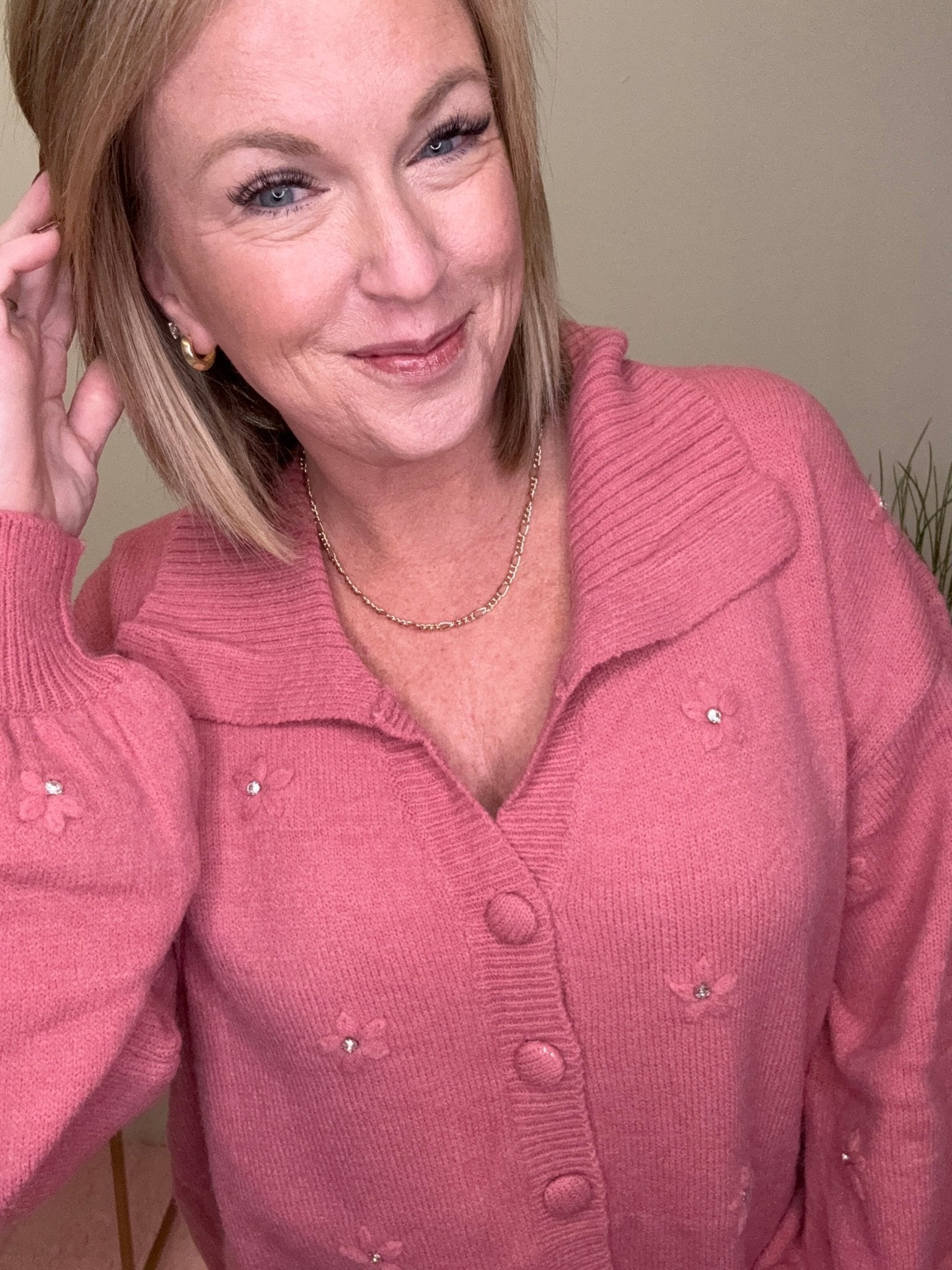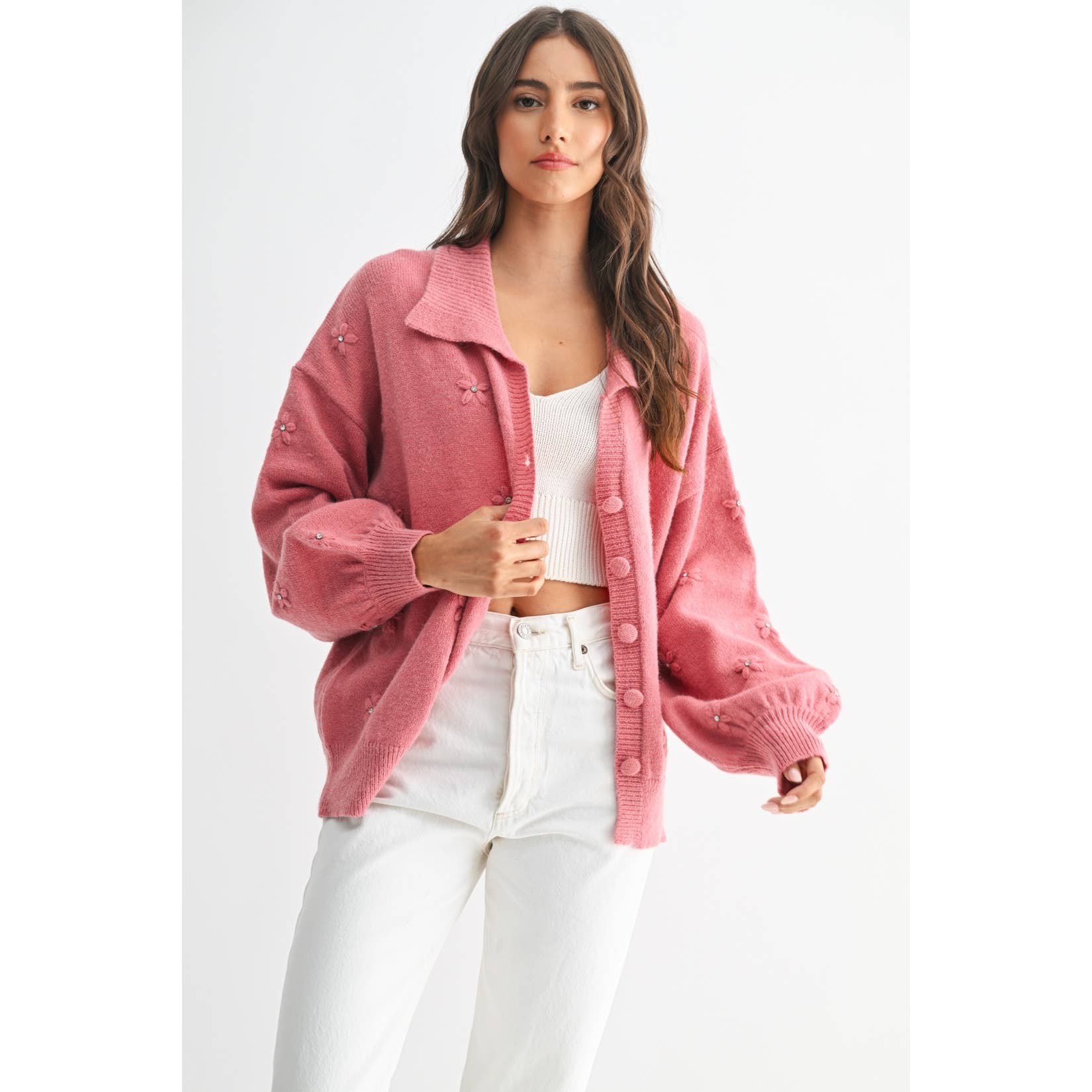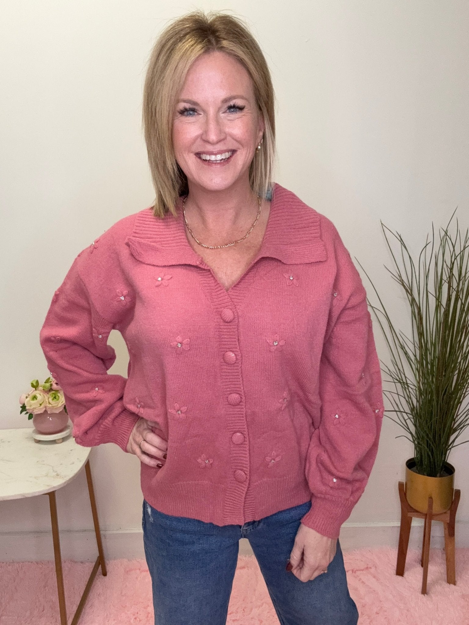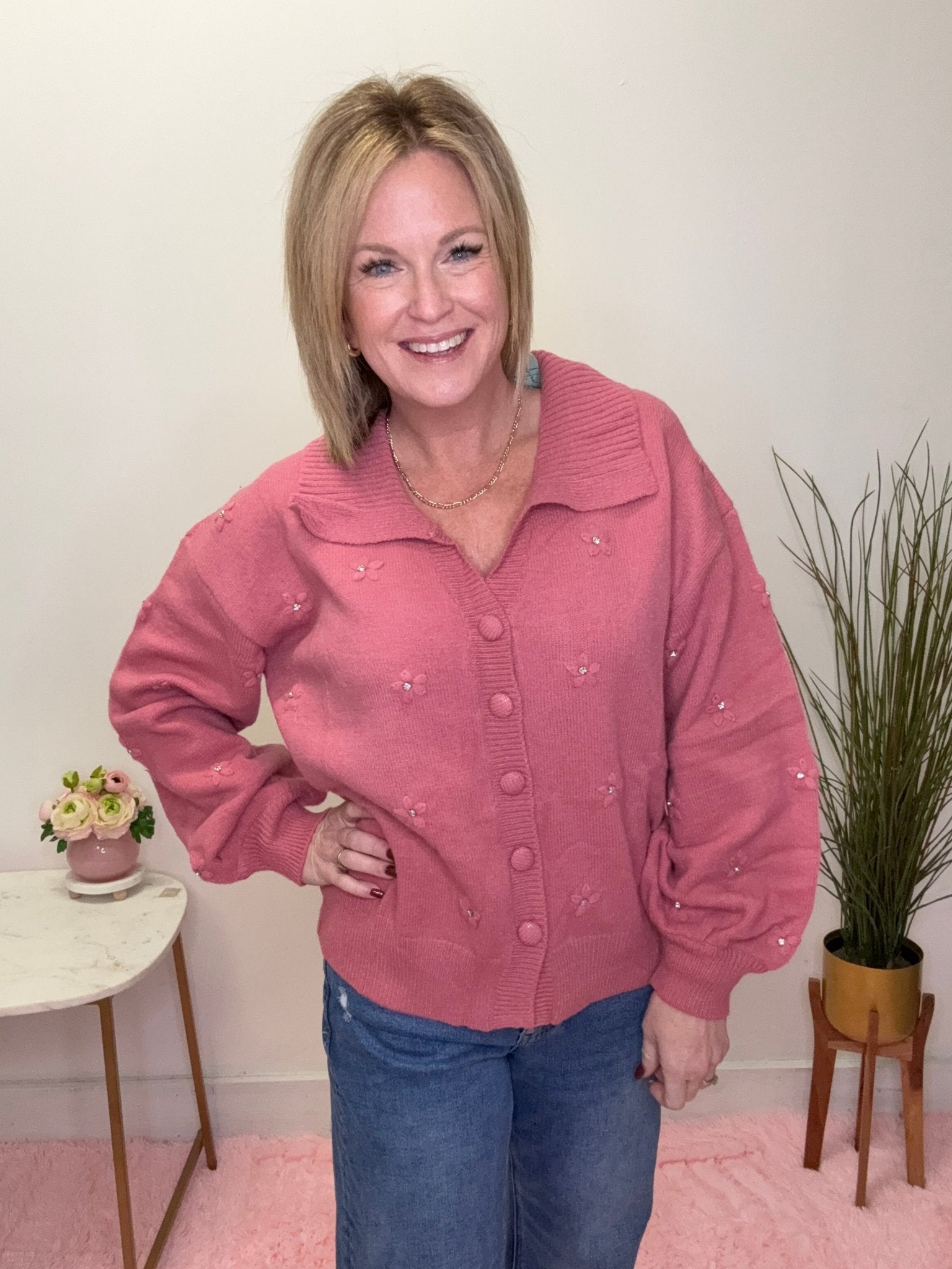 Cozy Cardigan With Floral Embellishments