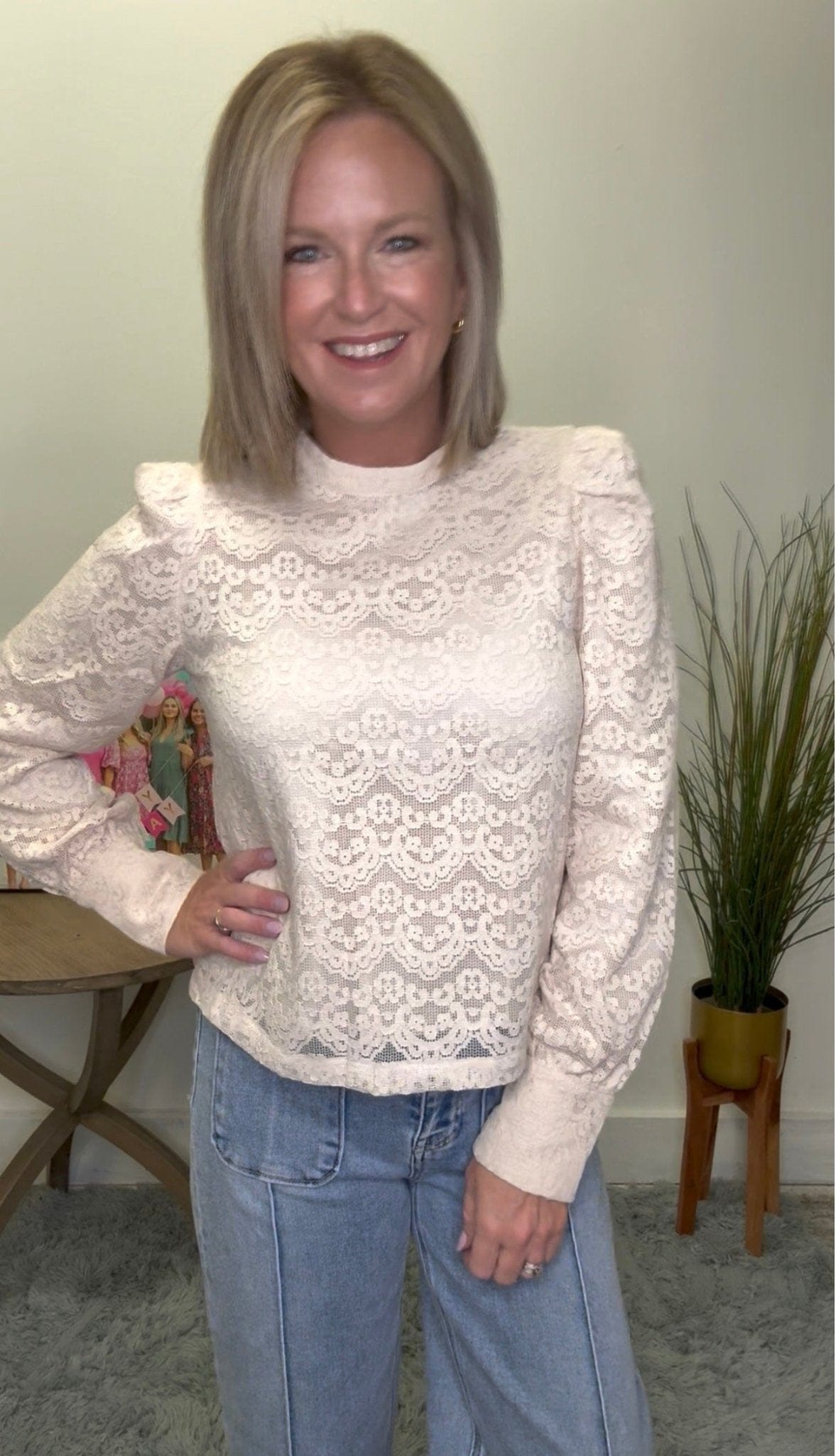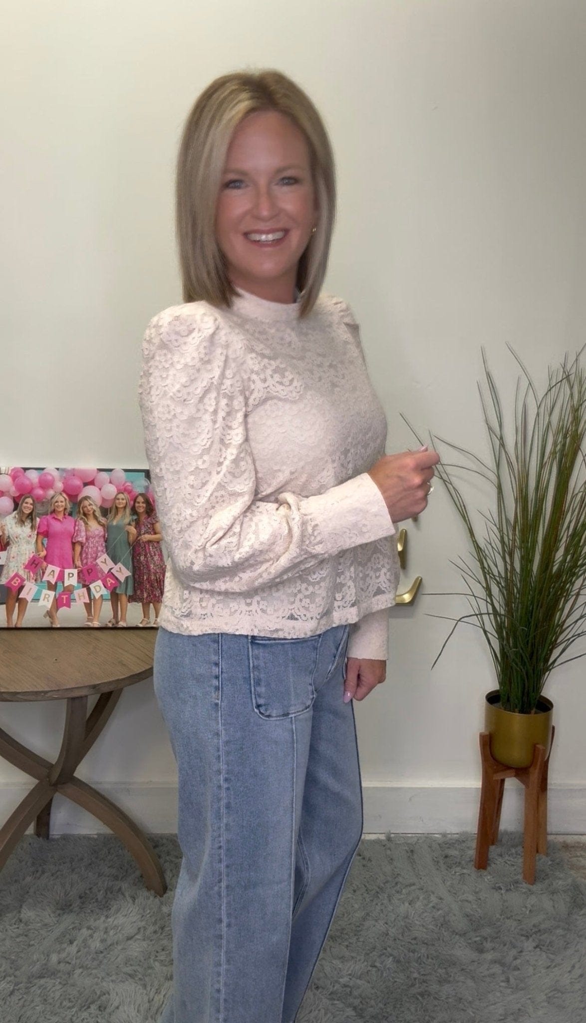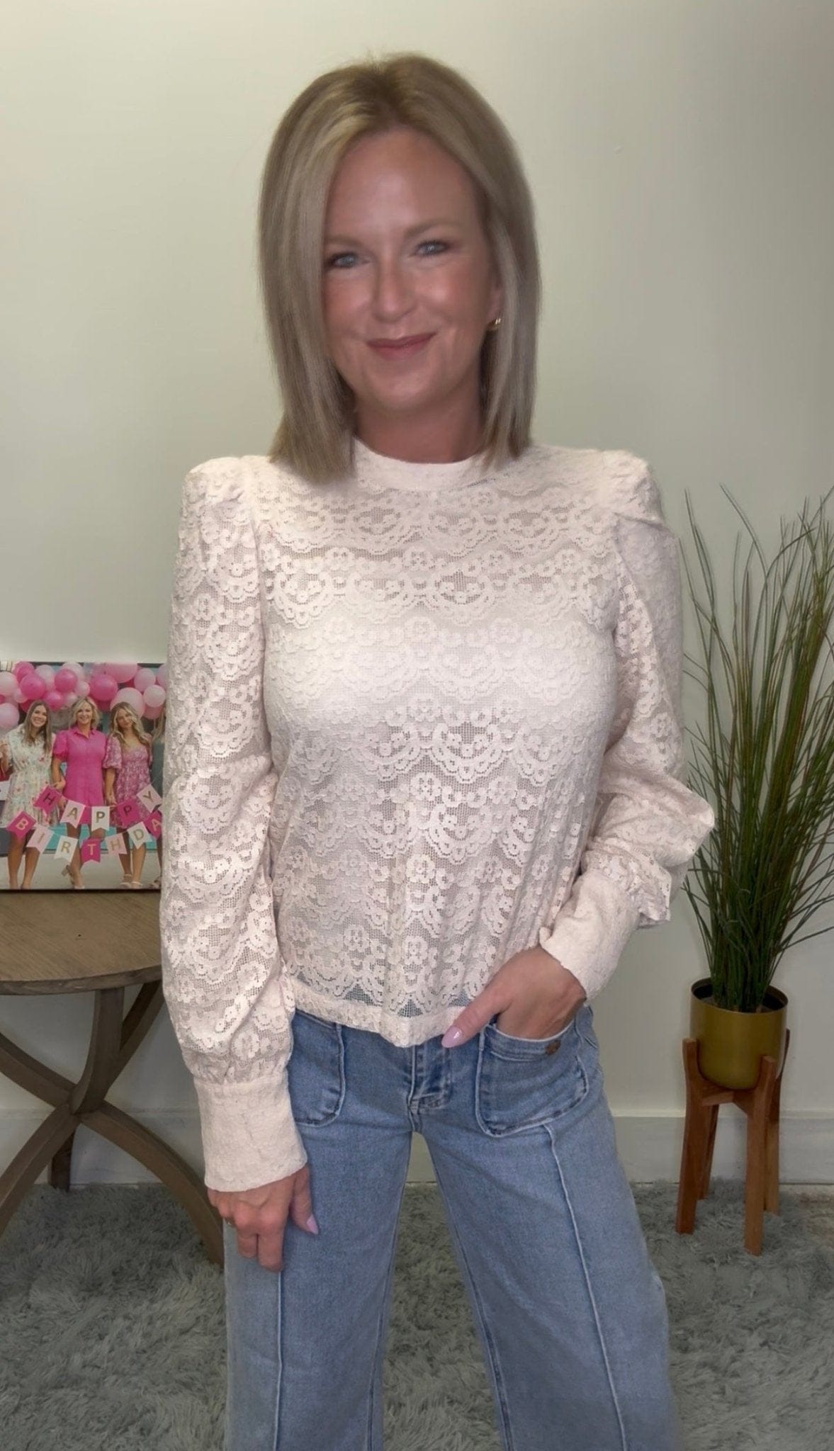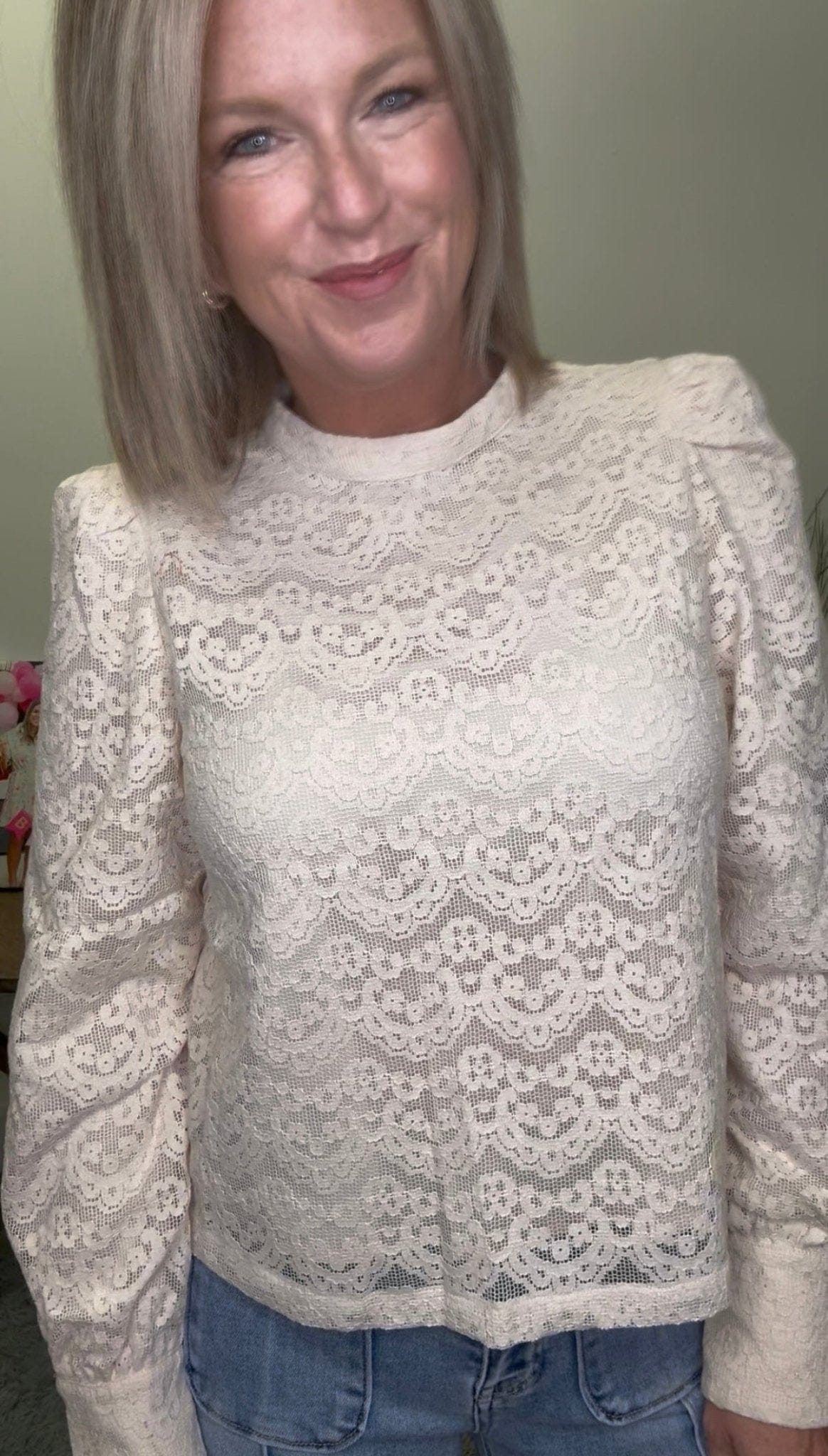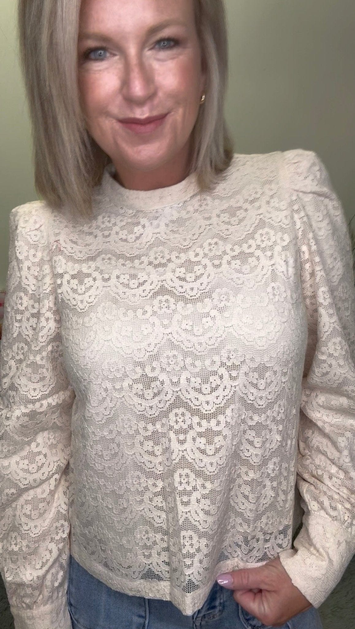 Get ready to turn heads in this beautiful Lace High Neck Puff Sleeve Top. With delicate lace and small puff sleeves, this top is perfect for date night, work, or girls night. Its full lining ensures a comfortable fit while its ivory/cream color adds a touch of elegance. A must-have addition to your wardrobe!