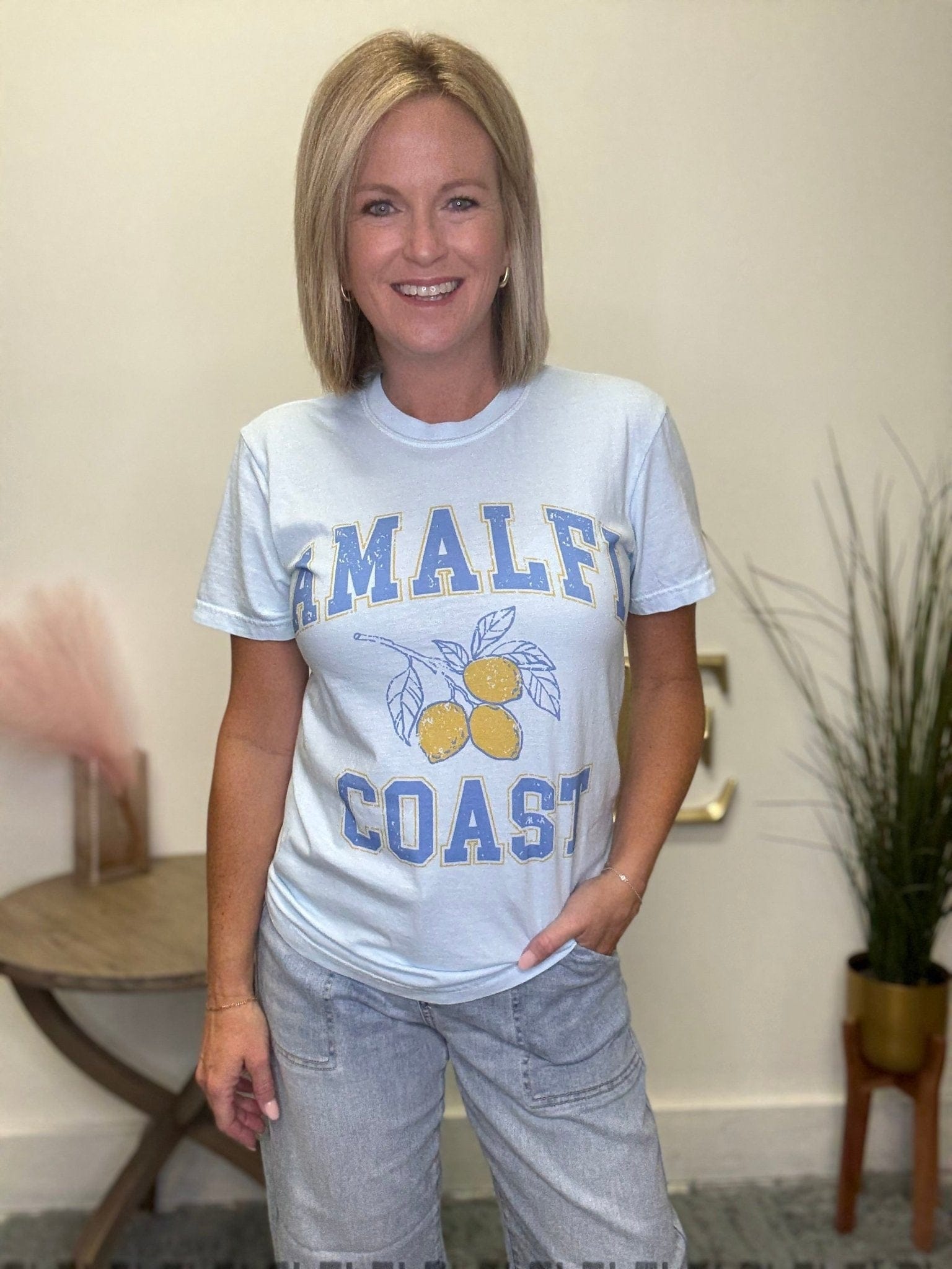 Light Blue Amalfi Coast Graphic Tee Shirt
