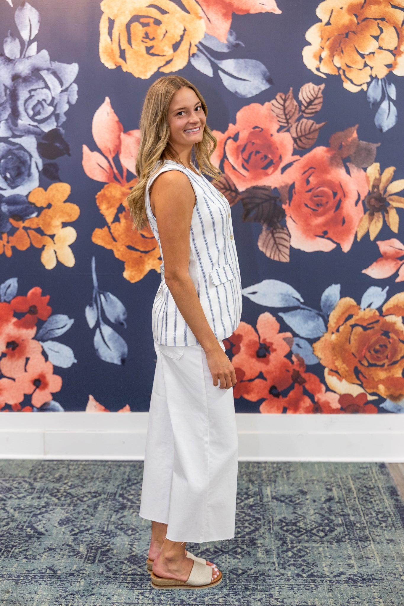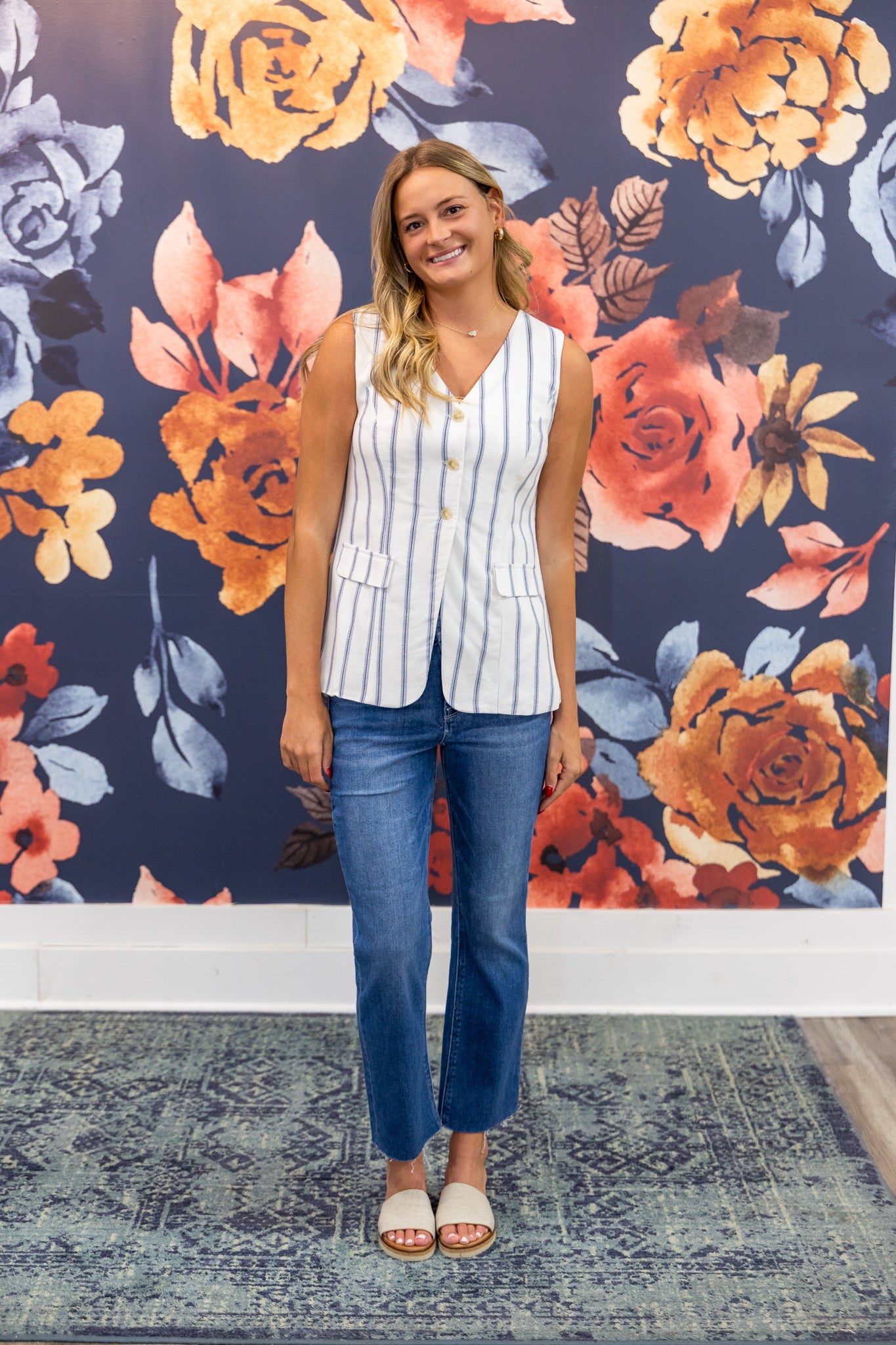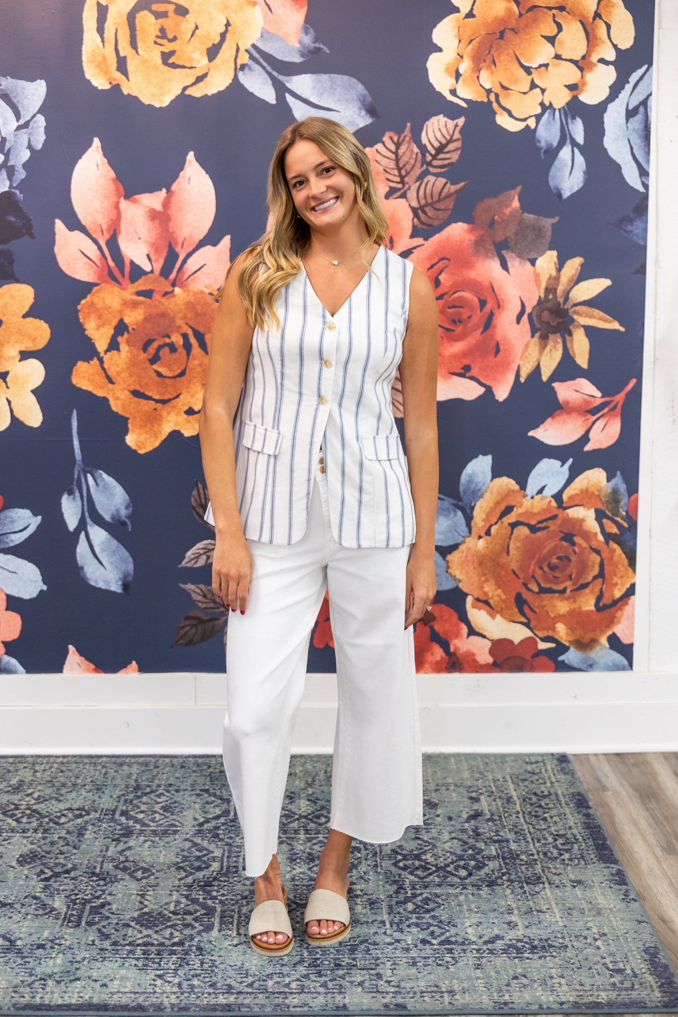 Open media with position 8 in modal popup Multi - Stripe Cream Linen Vest - Blu Pepper 110 Tops - Ella Chic BoutiqueBlu Pepper