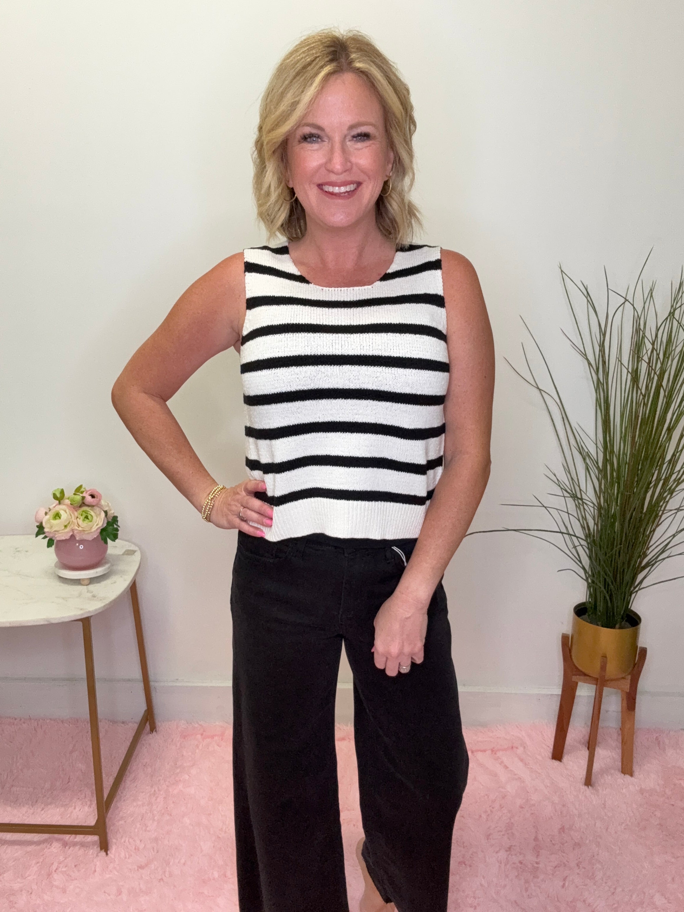 Classically Striped Back Tie Sleeveless Knit Sweater